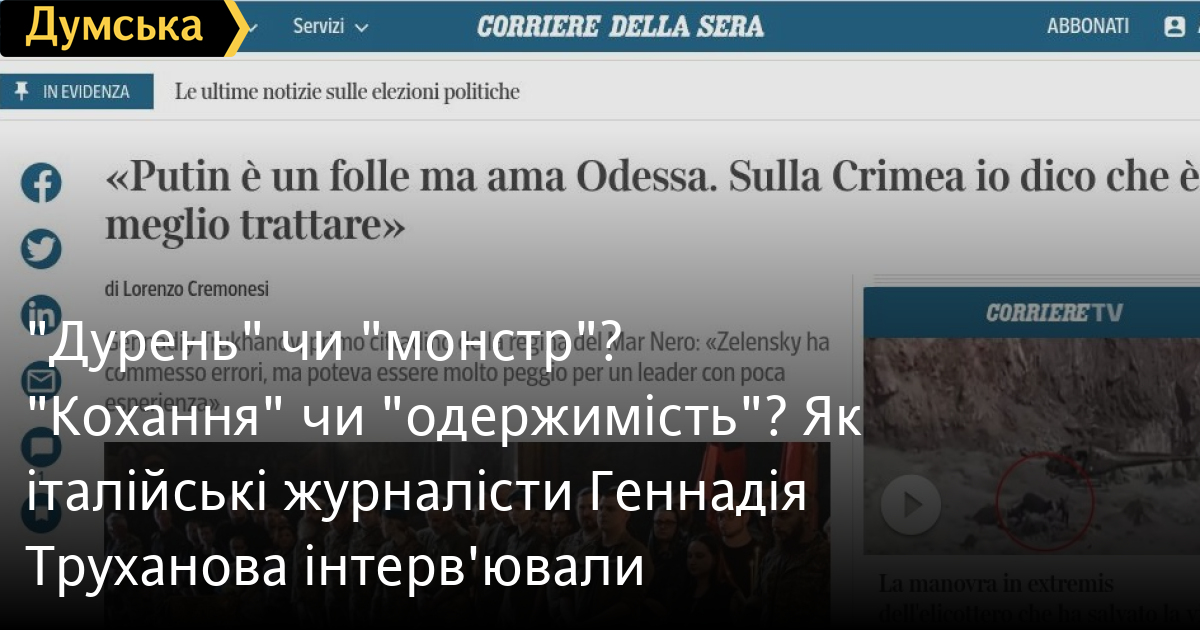 Інтерв'ю Геннадія Труханова італійській газеті Corriere della Sera викликало вибух обурення в українській медіасфері. Насамперед — через заголовок.