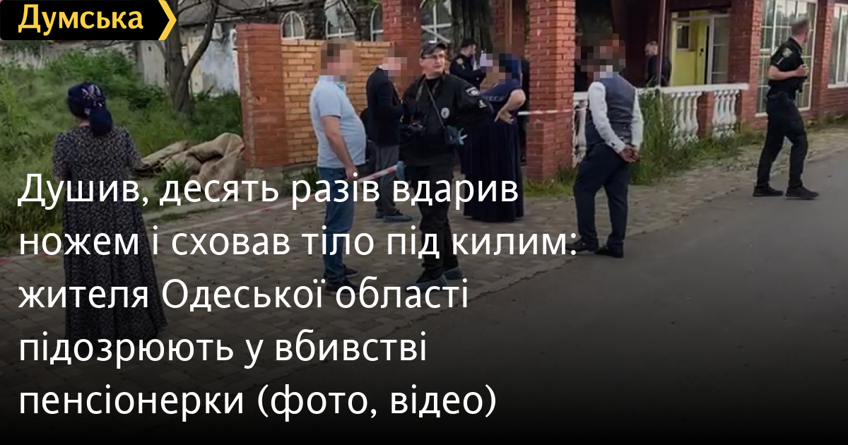 Душив, десять разів вдарив ножем і сховав тіло під килим: жителя Одеської області підозрюють у вбивстві пенсіонерки (фото, відео)24-річного жителя Одеської області, якого підозрюють у жорстокому вбивстві пенсіонерки, затримали правоохоронці. Як повідомили у пресслужбі поліції регіону, 14 травня чоловік прийшов до 65-річної знайомої, яка мешкала в будинку своїх друзів і доглядала за господарством за їхньої відсутності. Він попросив позичити йому грошей, але жінка відмовила, що сильно розлютило гостя. Виникла сварка, під час якої молодик почав душити пенсіонерку, а коли вона майже знепритомніла, завдав їй ударів по голові побутовим приладдям та понад десять разів вдарив ножем. Коли він зрозумів, що вбив жінку, накрив її тіло килимом, втік і позбувся закривавленого одягу та ножа. Тіло вбитої за три дні знайшов родич власників будинку й одразу заявив у поліцію. За кілька годин правоохоронці встановили особу підозрюваного, який зізнався, що вбита була йому, як названа матір, але в запалі сварки він сильно розлютився. Під час огляду фігуранта в нього знайшли наркотичну речовину «сіль», а в нього вдома — докази причетності до вбивства. Також з'ясувалося, що чоловік перебуває в розшуку за неявку до суду за звинуваченням у крадіжці. Зловмиснику повідомили про підозру за ч. 1 ст. 115 КК України. Йому загрожує від семи до 15 років позбавлення волі. Суд обрав йому запобіжний захід у вигляді тримання під вартою. Помітили помилку? Виділяйте слова з помилкою та натискайте control-enter Новини по цій темі: 1 червня 2023: Вдарив сокирою по обличчю і сховав тіло в колодязі: на Одещині затримали підозрюваного у вбивстві 9 травня 2023: Зарізала орендодавицю через ревнощі та сховала тіло в колодязі: мешканці Одеської області загрожує до 15 років в`язниці 24 квітня 2023: Мешканка Одеської області зарізала чоловіка кухонним ножем 20 березня 2023: У Київському районі Одеси жінка зарізала свого чоловіка |