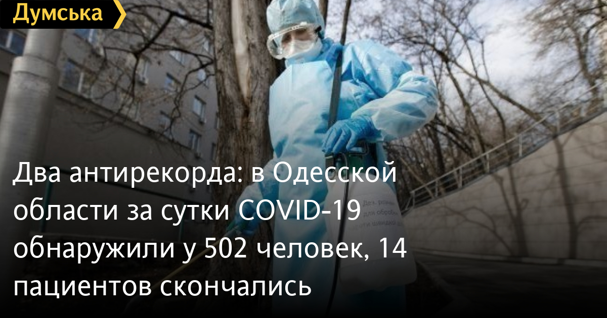 Два антирекорда: в Одесской области за сутки COVID-19 обнаружили у 502 человек, 14 пациентов скончались15 октября в Одесской области выявили пока что самое большое количество инфицированных COVID-19 за сутки – 502 новых пациента. Общее число инфицированных в регионе с начала пандемии достигло 18013 человек. Как сообщили в Минздраве, Одесская область оказалась на втором месте в стране по распространению «ковида». Больше новых случаев вчера было только в Харьковской области – 544. Также Одесская область «лидирует» по количеству смертей от осложнений коронавируса. Вчера область также поставила антирекорд по смертности – 14 летальных исходов за день. Больше было только в Киеве – 22. Данных о количестве выздоровевших вчера нет. Число подозрений увечилось на 502 (19792 за все время наблюдений). СМЕРТЬ РОСІЙСЬКИМ ОКУПАНТАМ! Помітили помилку? Виділяйте слова з помилкою та натискайте control-enter Новини по цій темі: 4 березня 2023: "Вакцини-довгожителі", або Як щеплення проти COVID-19 перетворилися в Україні на небезпечний ритуал 27 січня 2023: МОЗ зобов`язали опублікувати договори на закупівлю вакцин проти COVID-19: апеляційний суд задовольнив позов журналіста "Думської" 11 січня 2023: За тиждень в Одесі зафіксовано 159 випадків ковіду 4 січня 2023: За тиждень в Одесі зареєстровано 113 випадків ковіду |