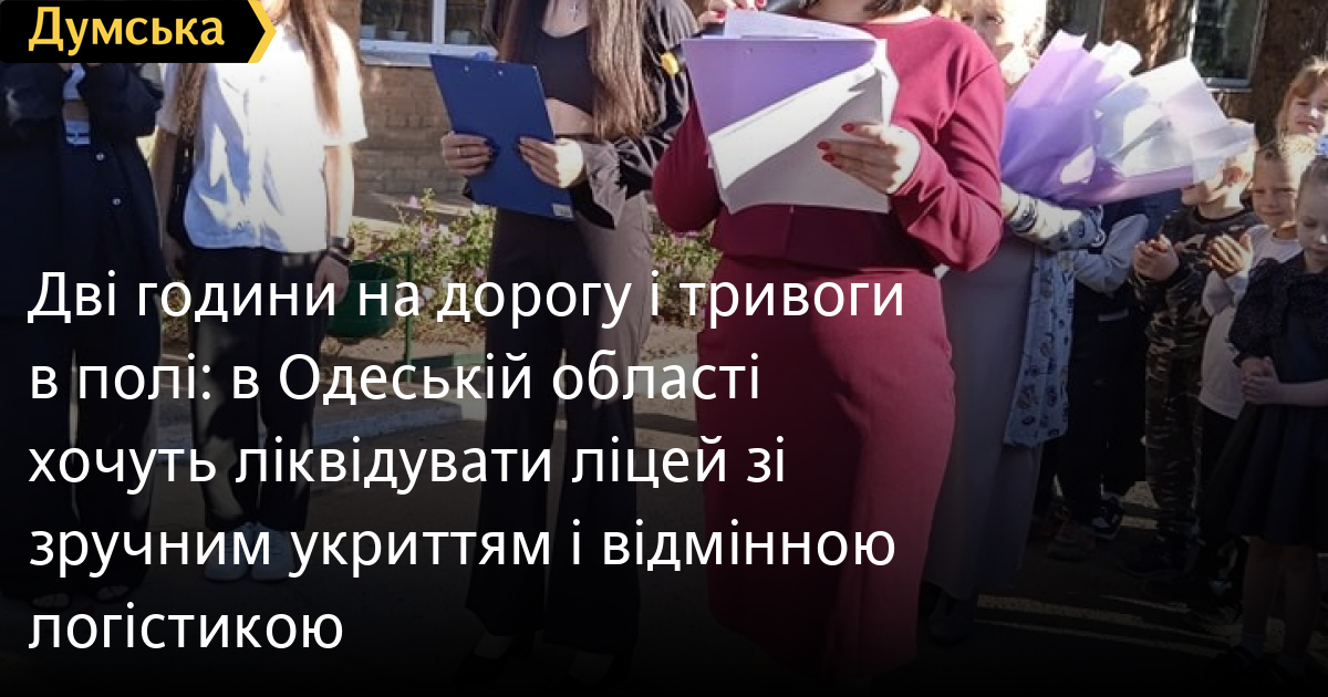 Дві години на дорогу і тривоги в полі: в Одеській області хочуть ліквідувати ліцей зі зручним укриттям і відмінною логістикоюЖителі села Троїцьке і навколишніх сіл Подільського району обурені тим, що в їхній школі не буде старших класів. Як передає кореспондент «Думської», з 1 вересня 2027 року деяким учням доведеться добиратися до школи за 40 км. Батьки нарікають, що школярам доведеться вставати до світанку і проводити в дорозі до двох годин, щоб дістатися до Любашівки, де буде діяти академічний ліцей для учнів старшої школи. «Ми від Любашівки маємо необхідні 30 кілометрів, що прописано в нормативах, проте наш ліцей має близько 250 дітей, які приїжджають до нас з сусідніх шкіл, і ось для них їздити в Любашівку – вже не 25-30 кілометрів, а 40», — каже директор Троїцького ліцею Яна Матеранська. Ну і не забуваємо про питання безпеки. Що якщо трапиться тривога, яка триває кілька годин (що зараз не рідкість)? Діти в Любашівці будуть відірвані від дому до пізнього вечора. Замість того щоб після відбою швидко повернутися додому в межах свого округу, вони стають заручниками ситуації і складної логістики підвезення. «Ціна «шкільного дня»: щоб дитина потрапила на перший урок в Любашівці на 8:00, вона повинна виїхати о 06:30. А це означає підйом не пізніше 5:30 ранку. Кожен день! Ми говоримо про європейські стандарти, але змушуємо дітей жити в режимі виснажливої праці ще до початку занять. Чи буде така дитина здатна засвоювати складний матеріал ліцею після 1,5-годинної тряски в автобусі? Відповідь очевидна — ні», — обурюється активістка батьківської спільноти Яна Разуваєва. Причина проста — у старших класах просто недостатньо дітей. Їх 50, при нормі на два класи — 60. Через це учням доведеться їхати за тридев'ять земель до райцентру по жахливих дорогах, коли під боком є свій навчальний заклад.У нас триповерхова школа, місця хоч відбавляй, укриття на 650 місць, яке при мінімальних змінах можна розширити до 1000, в той час, як в Любашівці укриття на 300 місць і дітей під час тривог розпускають по домівках, — нарікає мешканка Троїцького Олена Бобошко. Батьки учнів вже звернулися до депутатів місцевої ради з вимогою не позбавляти Троїцький ліцей його статусу. Водночас голова обласного департаменту освіти і науки Олександр Лончак заявив «Думській», що реорганізації все ж не уникнути. «Реформа говорить про те, що для отримання якісної освіти десяті класи повинні мати паралель, тобто, мінімум два класи і три профілі: математичний, філологічний і третій на вибір установи. Це не менше 60 учнів. У Троїцькому демографічна ситуація така, що це число не перевищує 50. Тому дітям доведеться навчатися в академічному ліцеї в Любашівці. Можна створити безліч класів по п'ять учнів, але це не про якість освіти», — зазначив чиновник. За його словами, для Троїцького реорганізація місцевого ліцею стартує 1 вересня 2027 року. Місцеві жителі, в свою чергу, обурюються тим, що долі їхніх дітей поки що вирішуються чиновниками без громадських обговорень. «Реформа говорить про те, що для отримання якісної освіти десяті класи повинні мати паралель, тобто, мінімум два класи і три профілі: математичний, філологічний і третій на вибір установи. Це не менше 60 учнів. У Троїцькому демографічна ситуація така, що це число не перевищує 50. Тому дітям доведеться навчатися в академічному ліцеї в Любашівці. Можна ст