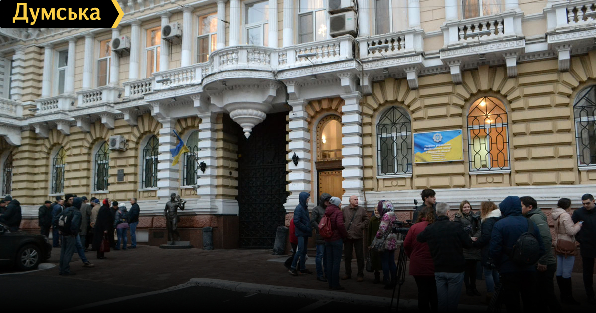 Одесские активисты устроили сегодня днем акцию протеста под стенами ГУНП, выступая с требованием отставки начальника одесской полиции Дмитрия Головина и прокурора Одесской области Олега Жученко. По словам собравшихся, правоохранительные органы не видят правонарушений со стороны городской власти и бизнес-групп, однако предвзято относятся к патриотам. «Они покрывают и устраивают расправы над несогласными. Мы не можем чувствовать себя защищенными. Правоохранители покрывают бандитов во властных кабинетах, становясь соучастниками преступления», — заявил организатор мероприятия юрист Артем Карташев. В акции приняли участие около 20 человек. После непродолжительного пикета протестующие пошли митинговать под областную прокуратуру. Фото — Андрей Колисниченко СМЕРТЬ РОСІЙСЬКИМ ОКУПАНТАМ! Помітили помилку? Виділяйте слова з помилкою та натискайте control-enter