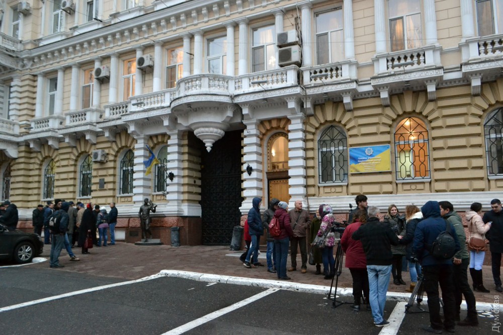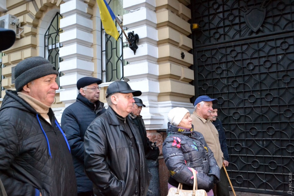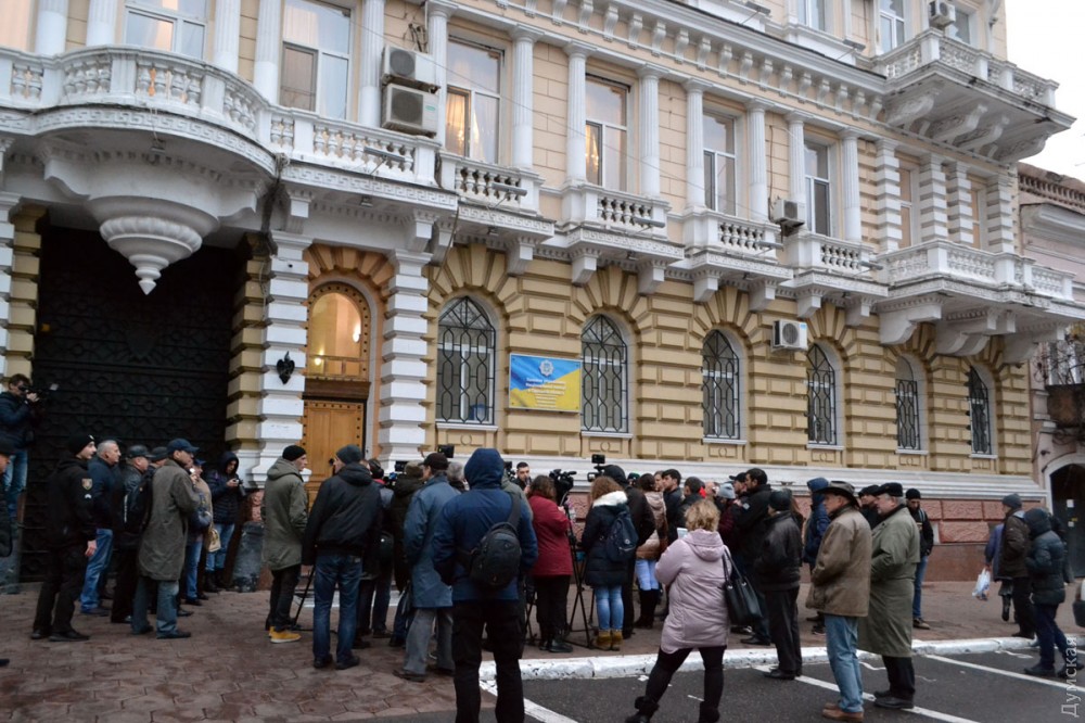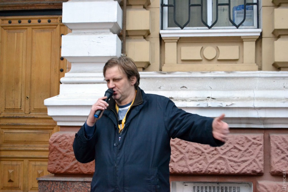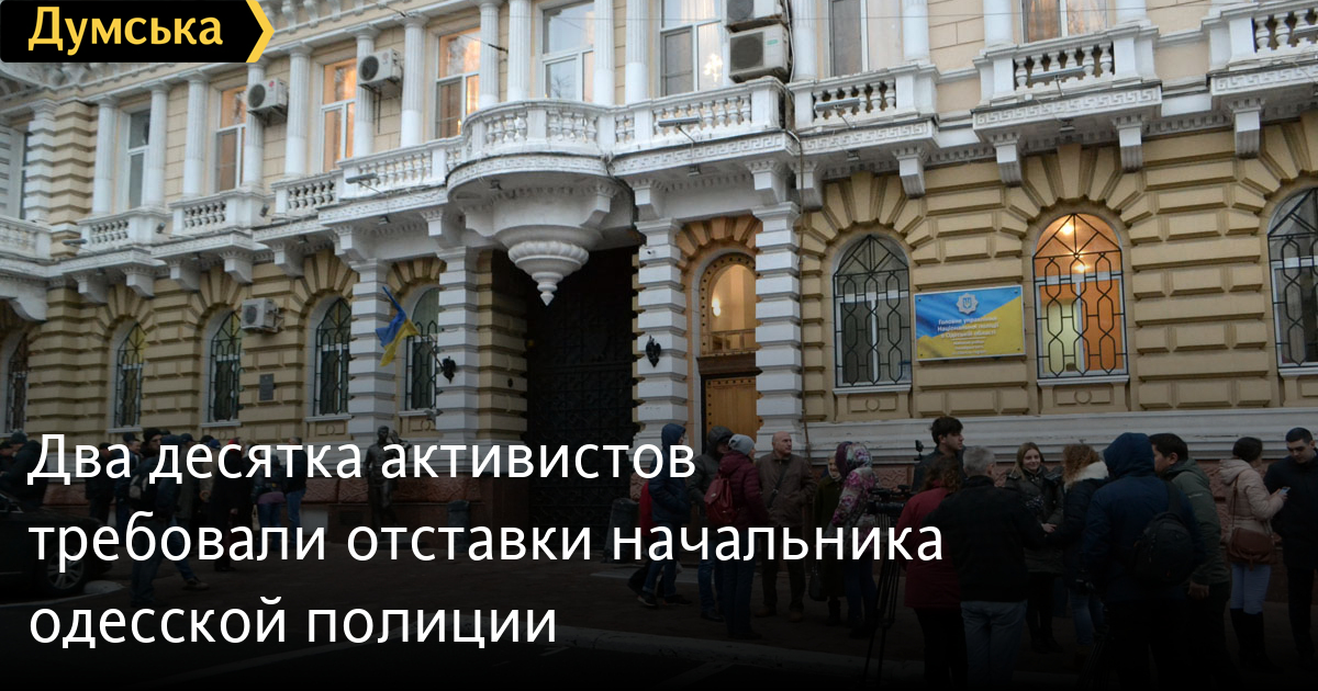 Одесские активисты устроили сегодня днем акцию протеста под стенами ГУНП, выступая с требованием отставки начальника одесской полиции Дмитрия Головина и прокурора Одесской области Олега Жученко.