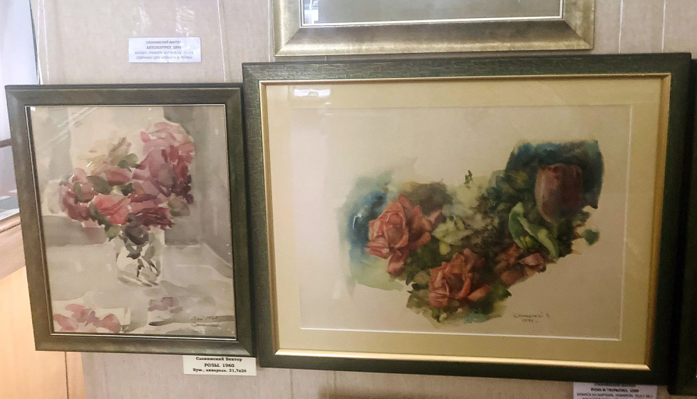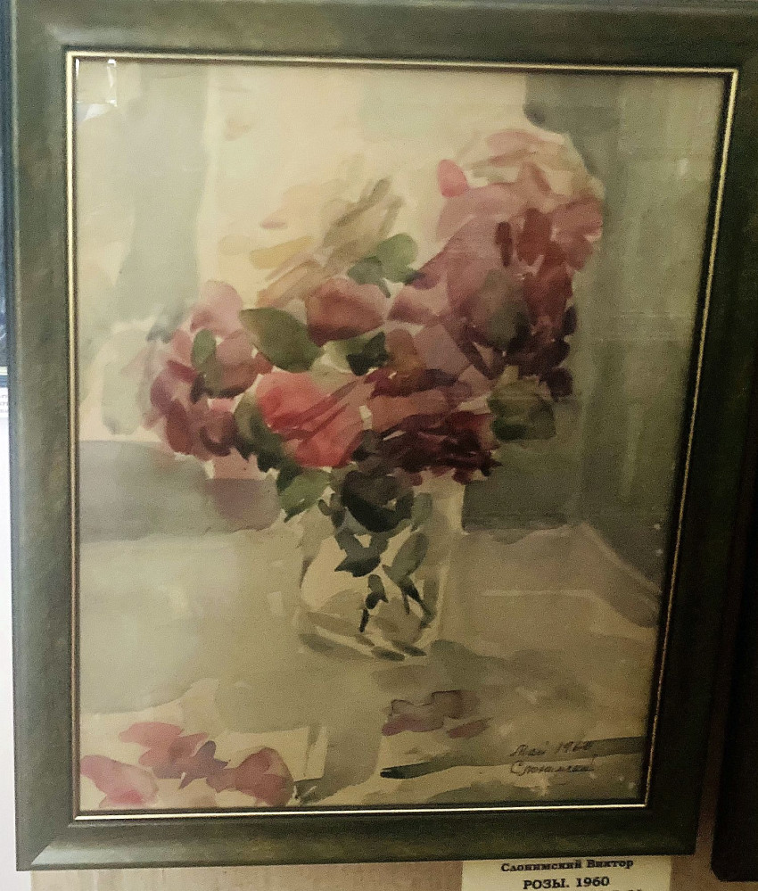 «Шесть лет назад ушел из жизни Виктор Лазаревич, но его работы находятся с нами, — говорит Елена Григорьевна. – Считаю их вершиной акварельного искусства. Слонимский писал «по-мокрому», рассматривал акварель как особо утонченный вид искусства. В основном архитектор-художник писал для себя, выражая любовное отношение к окружающему миру, красочному сочетанию тонов в цветах букета; был очень строг и взыскателен к своим произведениям, не любил выставляться, но любил показывать их друзьям. В нашем собрании есть его натюрморты и пейзажи дома специалистов в Ташкенте, где он жил, в этом доме был бассейн. Есть пейзажи Гавра и, конечно, Израиля с его спецификой, известно, что когда там дует хамсин, солнце светит бешено, на улице – сорок и больше градусов, и такая дымка образуется в стоячем воздухе…