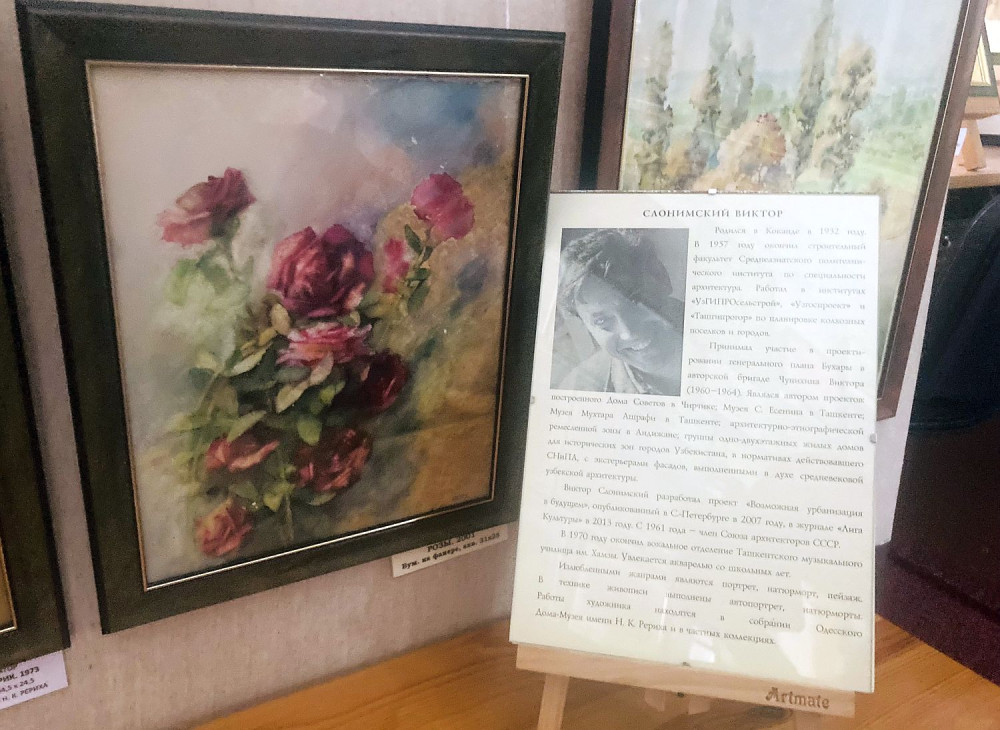 Многие его проекты реализовались в разных городах Узбекистана: Черчике, Ташкенте, Андижане. А на выставке показаны мастерски выполненные пейзажи, натюрморты, портреты, автопортреты в технике акварели и карандашного рисунка.