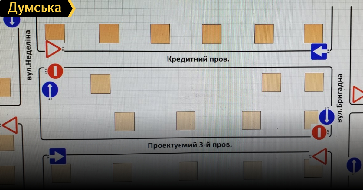 Движение по Кредитному переулку будет осуществляться от Бригадной улицы к Неделина. По 3-му Проектируемому – в обратном направлении.