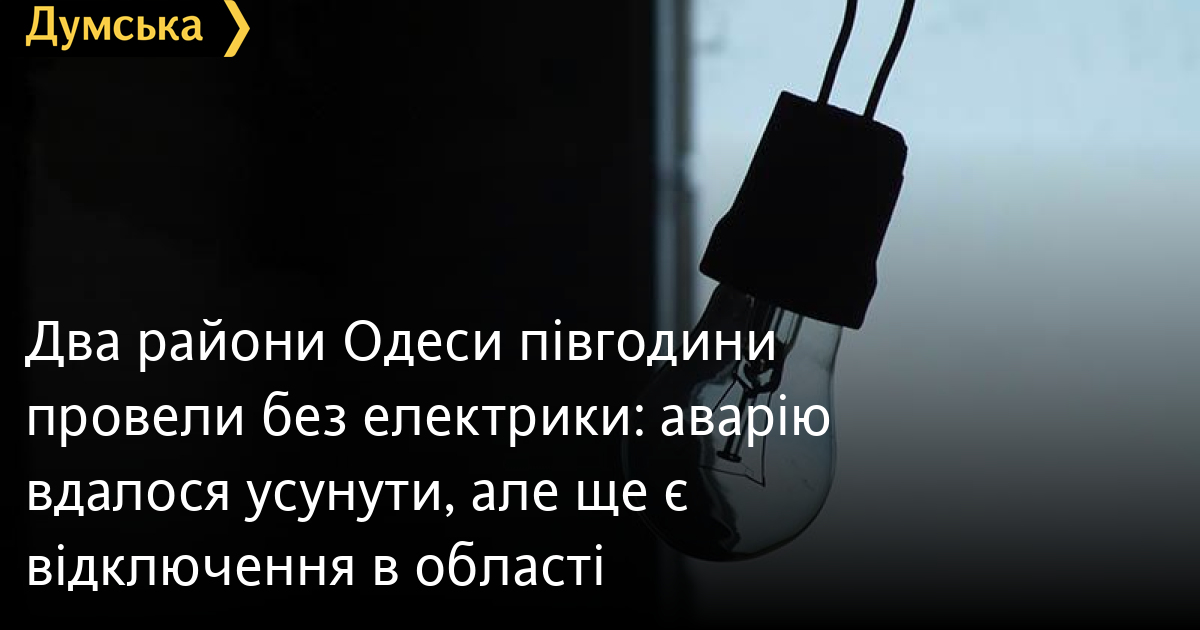 Два райони Одеси півгодини провели без електрики: аварію вдалося усунути, але ще є відключення в областіЖителі Київського та Хаджибейського районів Одеси з 15:09 до 15:35 були відключені від електозабезпечення. У ДТЕК повідомили, що це сталося через аварійне відключення обладнання на високовольтних підстанціях. Наразі проблему вдалося усунути і в усіх одеситів є світло. Утім, знеструмленими залишилися ще деякі абоненти в Одеському районі області. Енергетики в міру можливості переводять їх на резервну лінію. Помітили помилку? Виділяйте слова з помилкою та натискайте control-enter |