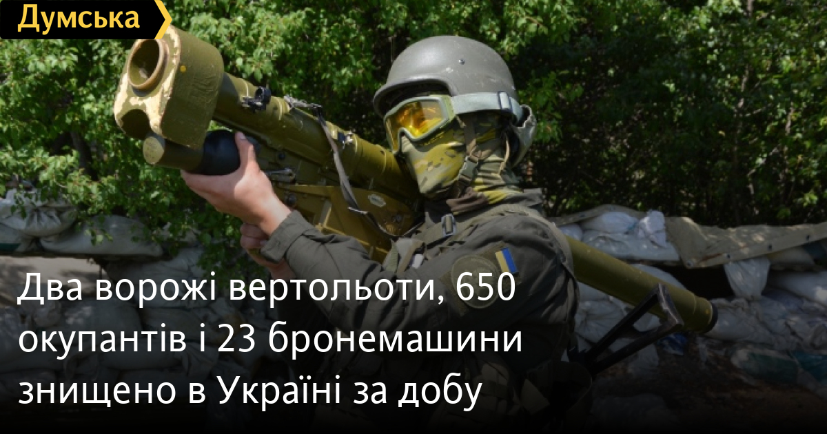 У Генеральному штабі Збройних сил України повідомили, що вчора наша ППО збила два ворожі вертольоти Ка-52 (304 за весь час).