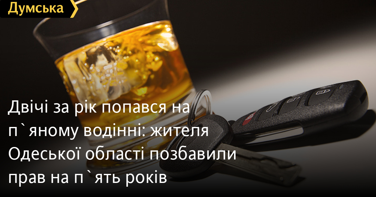 Двічі за рік попався на п`яному водінні: жителя Одеської області позбавили прав на п`ять роківМешканець Болградського району позбувся права на керування автомобілем строком на п'ять років через те, що двічі за півроку керував машиною в нетверезому стані. Як повідомили у пресслужбі поліції Одеської області, 26-річного чоловіка шість місяців тому спіймали п'яним за кермом. На нього склали адмінпротокол і суд заарештував порушника на десять днів і позбавив прав на рік. Нещодавно правоохоронці знову зупинили авто, яким молодик керував у стані алкогольного сп'яніння, хоча взагалі не мав права сідати за кермо. Він відмовився від проходження медогляду. На чоловіка знову склали адмінматеріали — цього разу за водіння у п'яному стані, вчинене повторно протягом року, та за відмову пройти огляд. Цього разу суд заарештував його на десять днів і позбавив прав на п'ять років. Помітили помилку? Виділяйте слова з помилкою та натискайте control-enter Новини по цій темі: 29 липня 2025: В Усатово Одеської області сталася перестрілка: поліція працює на місці (відео, оновлено) 28 липня 2025: П'яний на "Ягуарі" або гіпертонік? Звільнений топ-посадовець одеської поліції хоче повернутися на службу 19 червня 2025: Дівчинку, яку шукали сотні одеситів, знайшли вбитою: поліція працює з чоловіком, ймовірно причетним до загибелі 27 травня 2025: Увели гектар в університету: на Одещині засудили земельних аферистів, але без посадки і Хвоста |