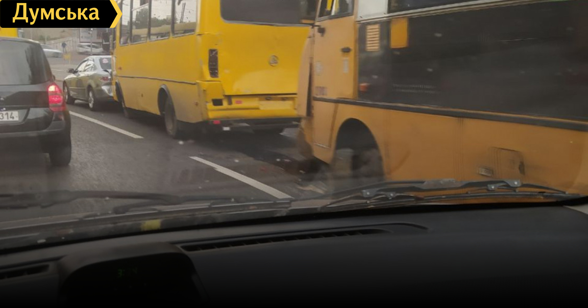 Масштабное ДТП произошло на спуске Маринеско в Одессе – 250-я маршрутка въехала сзади в автобус №145, который по инерции протаранил стоявшую впереди легковую «Мазду».