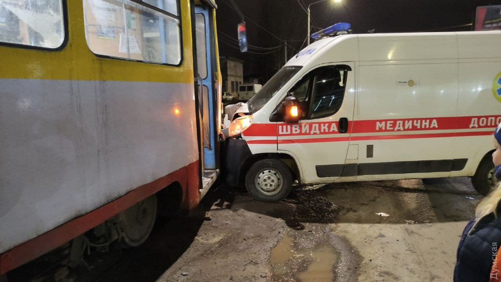 Вторая авария случилась вечером на Николаевской дороге. Там автомобиль скорой помощи столкнулся с трамваем.