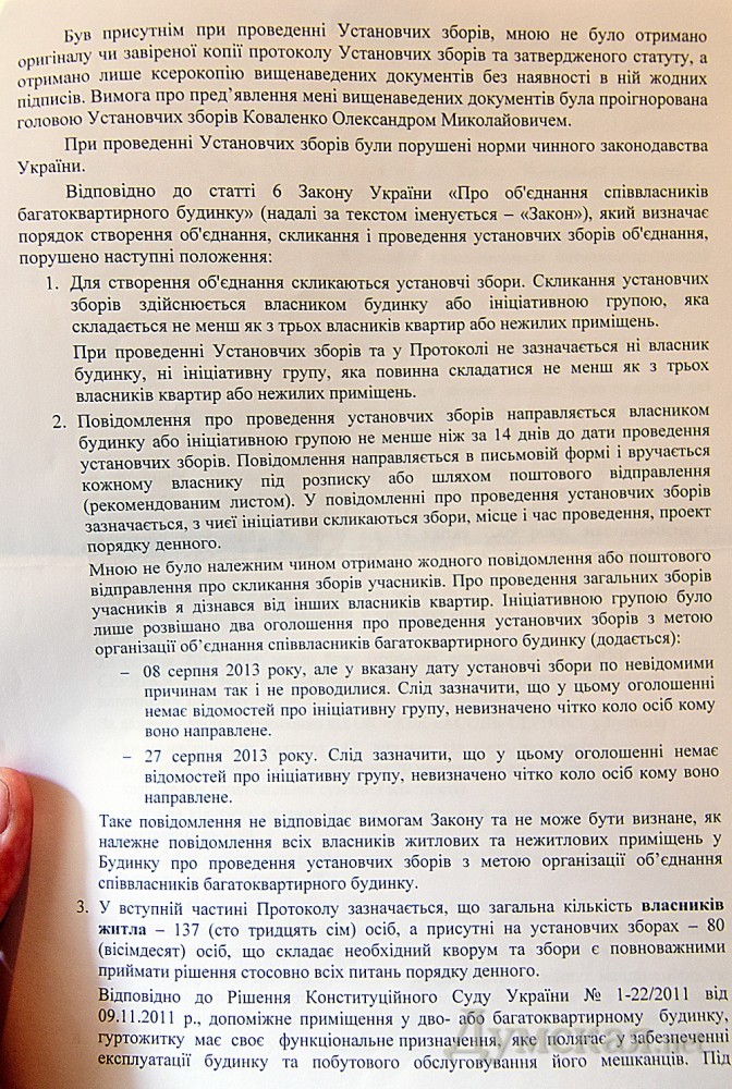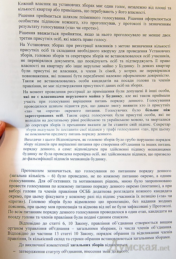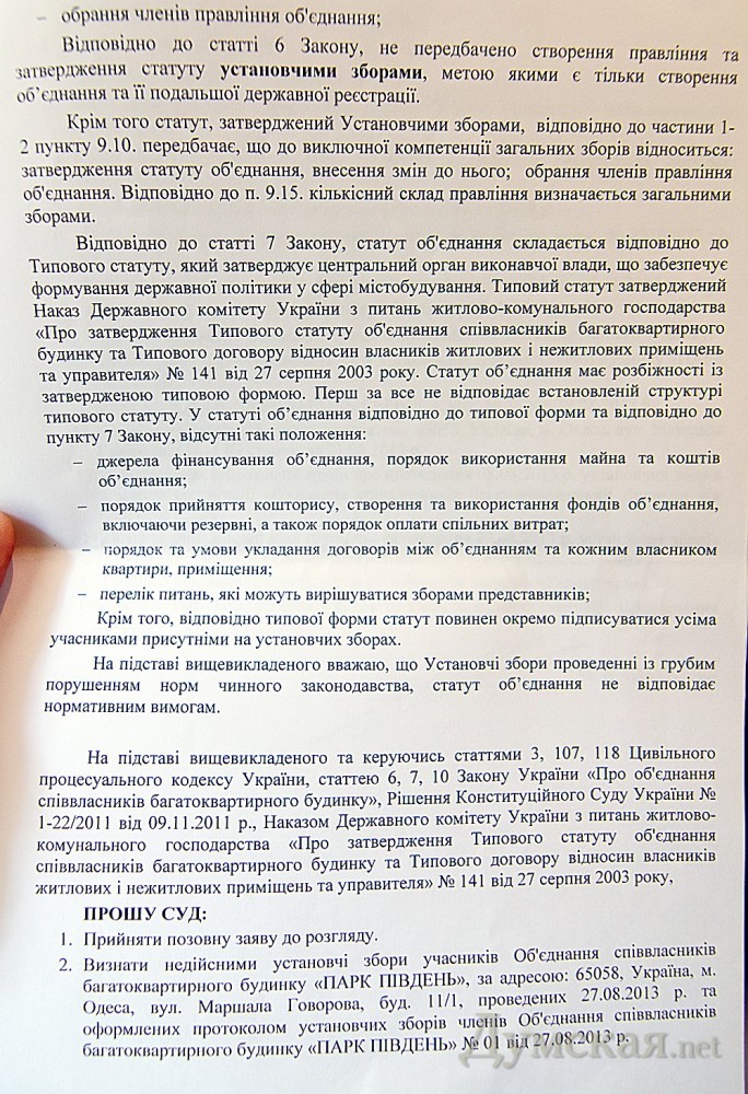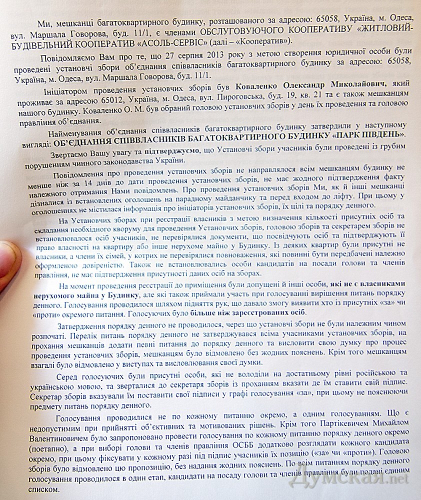 Одесса: сразу две организации борются за право обслуживать высотку у парка ПобедыВ доме №11/1 по улице Маршала Говорова, который неоднократно упоминался в связи с застройкой дендропарка Победы, возник еще один конфликт. Жильцы многоэтажки разделились на два противоборствующих лагеря — соответственно числу обслуживающих контор, алчущих этой самой многоэтажкой домоуправлять. До весны этого года дом обслуживала строительная компания «Ассоль», которая его и возводила. Но потом застройщику это надоело, и он передал бразды обслуживания неприбыльной организации «Ассоль-строй». Председатель последней Елена Майстренко рассказала «Думской», что за полгода работы новый кооператив успел заключить договора более чем с 60 жильцами, взвалить на себя их общий долг в 183 тысячи гривен и наладить работу со всеми поставщиками коммунальных услуг. Однако в прошлом месяце по инициативе одного из жильцов — Александра Коваленко — было создано ОСМД «Парк Юг». Также за это объединение совладельцев выступили двое молодых людей — Олег и Геннадий, которые представились «членами общественной организации, занимающейся защитой прав инвесторов одесских недостроев». По словам Елены Майстренко, учредительное собрание, участники которого чуть ли не единогласно поддержали создание ОСМД, проводилось с многочисленными нарушениями. «Во-первых, у них не было необходимого кворума, так как голосовать должны не только жильцы, но и наниматели жилой и нежилой площади в здании, включая даже владельцев парковочных мест в подземном паркинге. Дошло до вопиющих фактов, когда в голосовании и подсчете голосов принимали участие люди, не имеющие вообще никакого отношения к нашему дому, — заявил она. — Многие жильцы дома даже не знали о проведении этого собрания, часть подписей, как мы считаем, просто подделали». Тем временем некоторые жильцы опасаются, что смена обслуживающей организации ударит по их кошелькам. «Работа новой структуры приведет только к ухудшению услуг и повышению цен, они ведь для этого и создают ОСМД, чтобы цены повысить», — уверен 65-летний житель дома Владимир Шурдук. Как доказательство того, что происходящие изменения волнуют большинство жильцов, председатель кооператива передала журналистам обращение в общественную организацию «За справедливость и закон» и судебный иск с требованием признать недействительными результаты учредительного собрания. Следующим шагом жильцы называют обращение в прокуратуру по факту фальсификации подписей и уставных документов. СМЕРТЬ РОСІЙСЬКИМ ОКУПАНТАМ! Помітили помилку? Виділяйте слова з помилкою та натискайте control-enter |