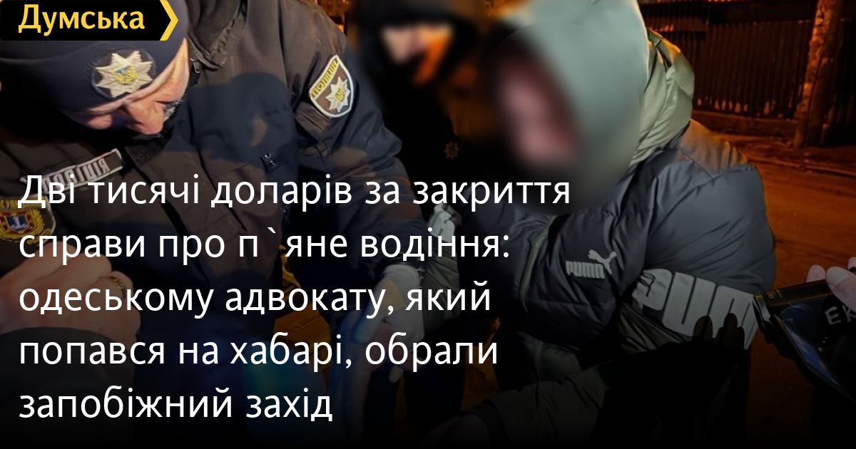 Дві тисячі доларів за закриття справи про п`яне водіння: одеському адвокату, який попався на хабарі, обрали запобіжний захід