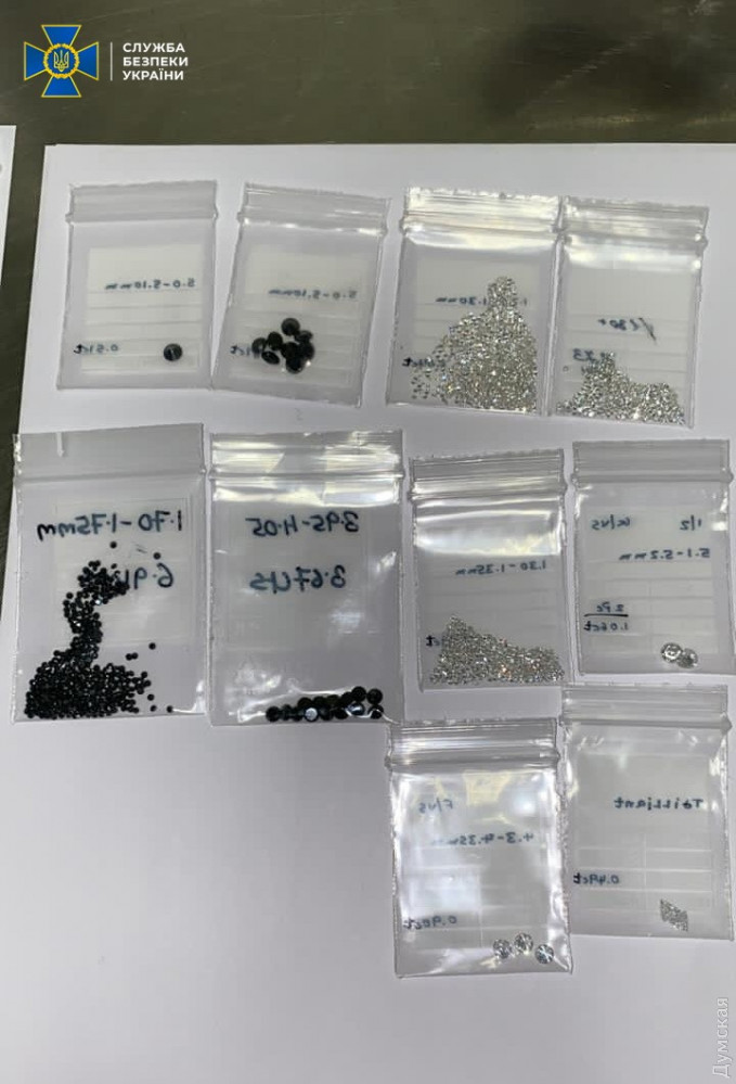 Правоохранители обнаружили в личных вещах женщин 38 пакетов с бриллиантами весом более 50 граммов. Ориентировочная стоимость драгоценностей — почти 17 миллионов гривен.