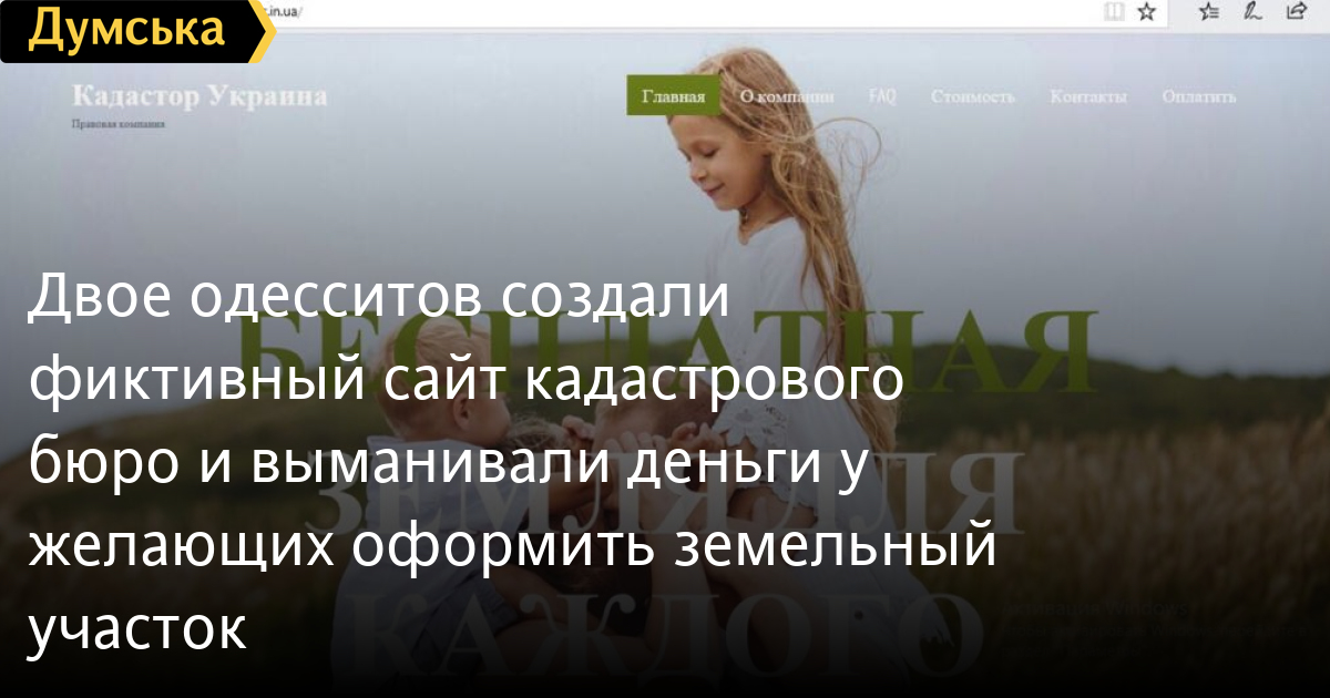 Двое одесситов создали фиктивный сайт кадастрового бюро и выманивали деньги у желающих оформить земельный участокСотрудники киберполиции разоблачили двух жителей Одесской области 19 и 22 лет, которые создали фиктивный сайт земельного кадастрового бюро. Как сообщили в пресс-службе ГУНП, сайт отличался от реального оформлением и доменным именем («kadastor[.]in.ua»). На нем мошенники указали регистрационные данные реального предприятия «Земельное кадастровое бюро», что и не вызывало сомнений у пользователей ресурса. С помощью этого сайта люди пытались оплатить услуги бюро за оформление и получение бесплатного земельного участка на территории Одесской области. В настоящее время полицейские установили 15 человек, которые стали жертвами действий злоумышленников. По всем фактам начаты уголовные производства. Для реализации своих преступных намерений, злоумышленники изготавливали фиктивные договоры с использованием реквизитов предприятия «Земельное кадастровое бюро» и скрепляли их поддельной мокрой печатью. По всем фактам полицейские начали уголовные производства по ч.3 ст. 190 (мошенничество) Уголовного кодекса Украины. СМЕРТЬ РОССИЙСКИМ ОККУПАНТАМ! Заметили ошибку? Выделяйте слова с ошибкой и нажимайте control-enter |