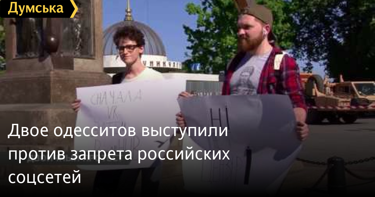 Одесситы выступают против запрета российских соцсетей и поисковых систем. На митинг к памятнику Дюку пришли двое протестующих.