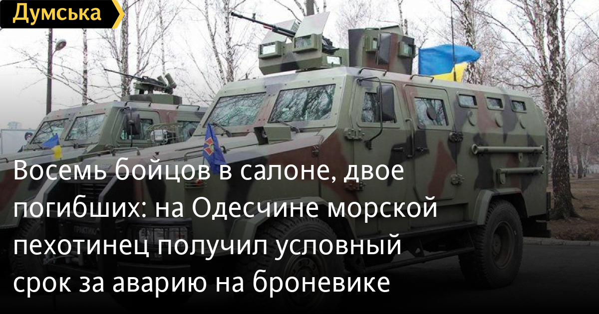 Вісім бійців у салоні, двоє загиблих: на Одещині морський піхотинець отримав умовний термін за аварію на броньовикуВирок морському піхотинцю, з вини якого загинули двоє побратимів та один дістав тяжкі травми, виніс Кілійський районний суд. Як повідомляє кореспондент «Думської», смертельна аварія сталася вдень 4 березня 2022 року біля села Десантне на трасі Спаське-Вилкове. Військовий їхав 112 км/год на справному бронеавтомобілі «Козак-2», перевищивши допустиму швидкість. Повертаючи біля заправки «Ромпетрол» він не впорався з керуванням, машина перекинулася на бік. У салоні перебували дев'ять військовослужбовців. Обвинувачений повністю визнав провину і розкаявся. У суді він повідомив, що дізнався про загибель побратимів уже у швидкій, оскільки в момент аварії знепритомнів. Суд врахував відсутність судимостей, наявність малолітньої дитини та статус інваліда війни чоловіка. Військовослужбовця визнали винним і призначили покарання — 5 років позбавлення волі. Однак з урахуванням пом'якшувальних обставин, суд звільнив його від відбування покарання з іспитовим строком 2 роки. Також з військового стягнули майже 12 тис. гривень за проведені експертизи. Вимоги військової частини про компенсацію понад 4,5 млн гривень суд відмовився задовольняти. Не було надано належних доказів вартості ремонту броньовика СМЕРТЬ РОСІЙСЬКИМ ОКУПАНТАМ! Помітили помилку? Виділяйте слова з помилкою та натискайте control-enter |
