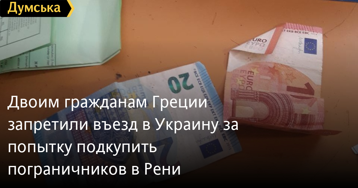 Двоим гражданам Греции запретили въезд в Украину за попытку подкупить пограничников в РениДвум гражданам Греции запретили въезд в Украину сроком на три года, за попытку дать взятку пограничникам. Об этом сообщили в пресс-центре Госпогранслужбы Украины. Инцидент произошел в пункте пропуска «Рени». Когда греческие байкеры въезжали в Украину на своих мотоциклах «BMW», пограничники обнаружили несоответствие номеров агрегатов регистрационным документам у одного из «железных коней». Для того, чтобы проехать беспрепятственно, второй мотоциклист пытался дать взятку за своего товарища в размере 30 евро. От денежного вознаграждения пограничники отказались. СМЕРТЬ РОСІЙСЬКИМ ОКУПАНТАМ! Помітили помилку? Виділяйте слова з помилкою та натискайте control-enter |