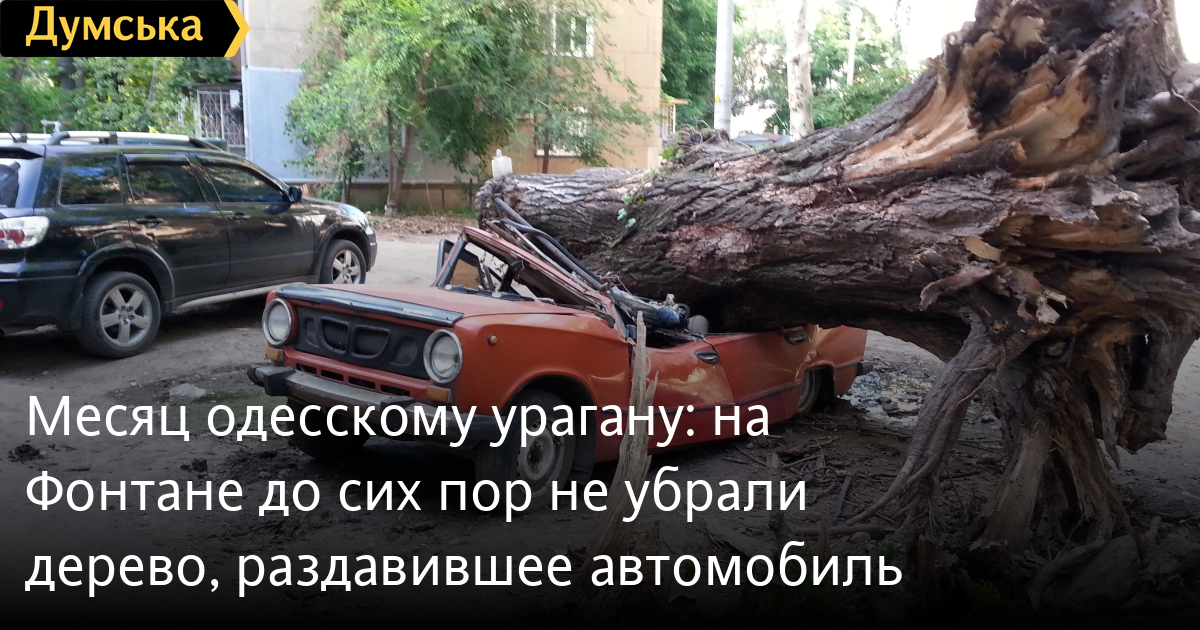 Месяц одесскому урагану: на Фонтане до сих пор не убрали дерево, раздавившее автомобильВо дворе по адресу Фонтанская дорога, 15 спустя месяц после урагана на автомобиле по-прежнему лежит дерево, упавшее на него 31 мая. Как сообщили «Думской» читатели в рамках интерактива «Месяц одесскому урагану», трухлявая акация во время стихии упала сразу на три автомобиля. Два других пострадали меньше – у одного всего несколько царапин, у другого вмятина. А вот старенькие жигули оказались полностью раздавлены. Коммунальщики сподобились лишь отпилить часть дерева, нависавшую над двумя другими машинами. Владельца «копейки» Владимира дома не оказалось. СМЕРТЬ РОССИЙСКИМ ОККУПАНТАМ! Заметили ошибку? Выделяйте слова с ошибкой и нажимайте control-enter |