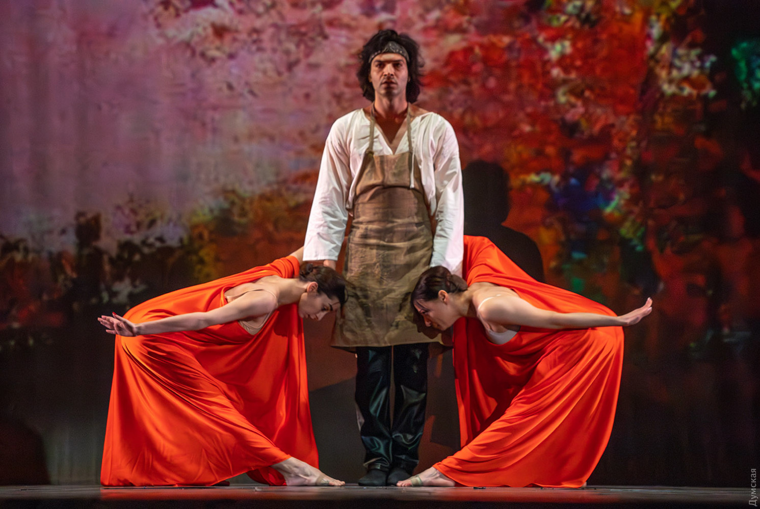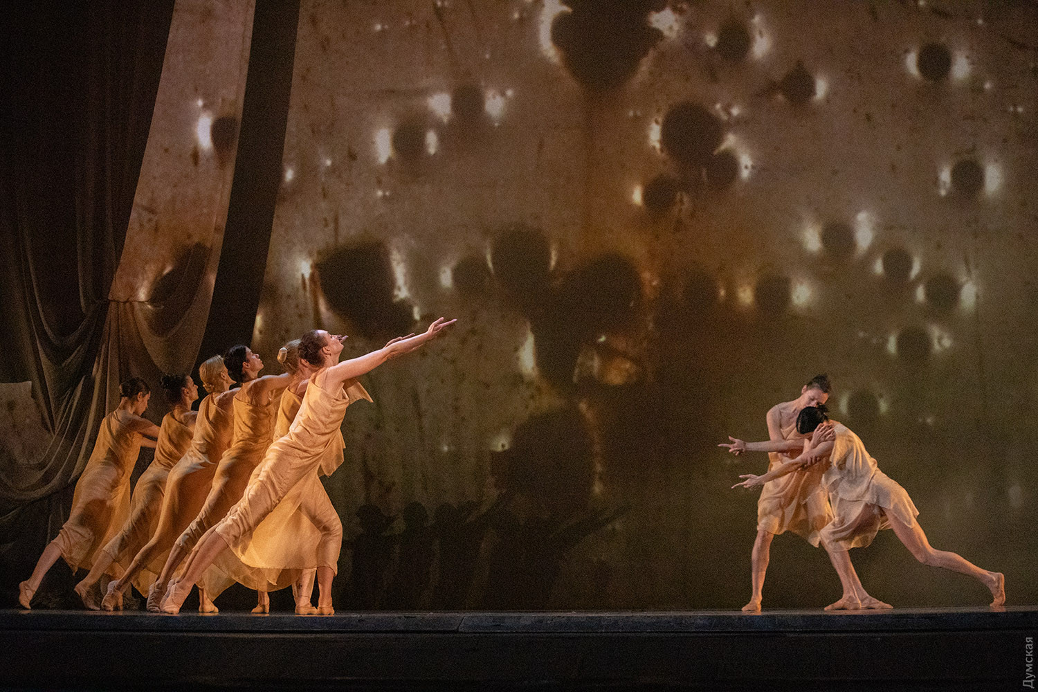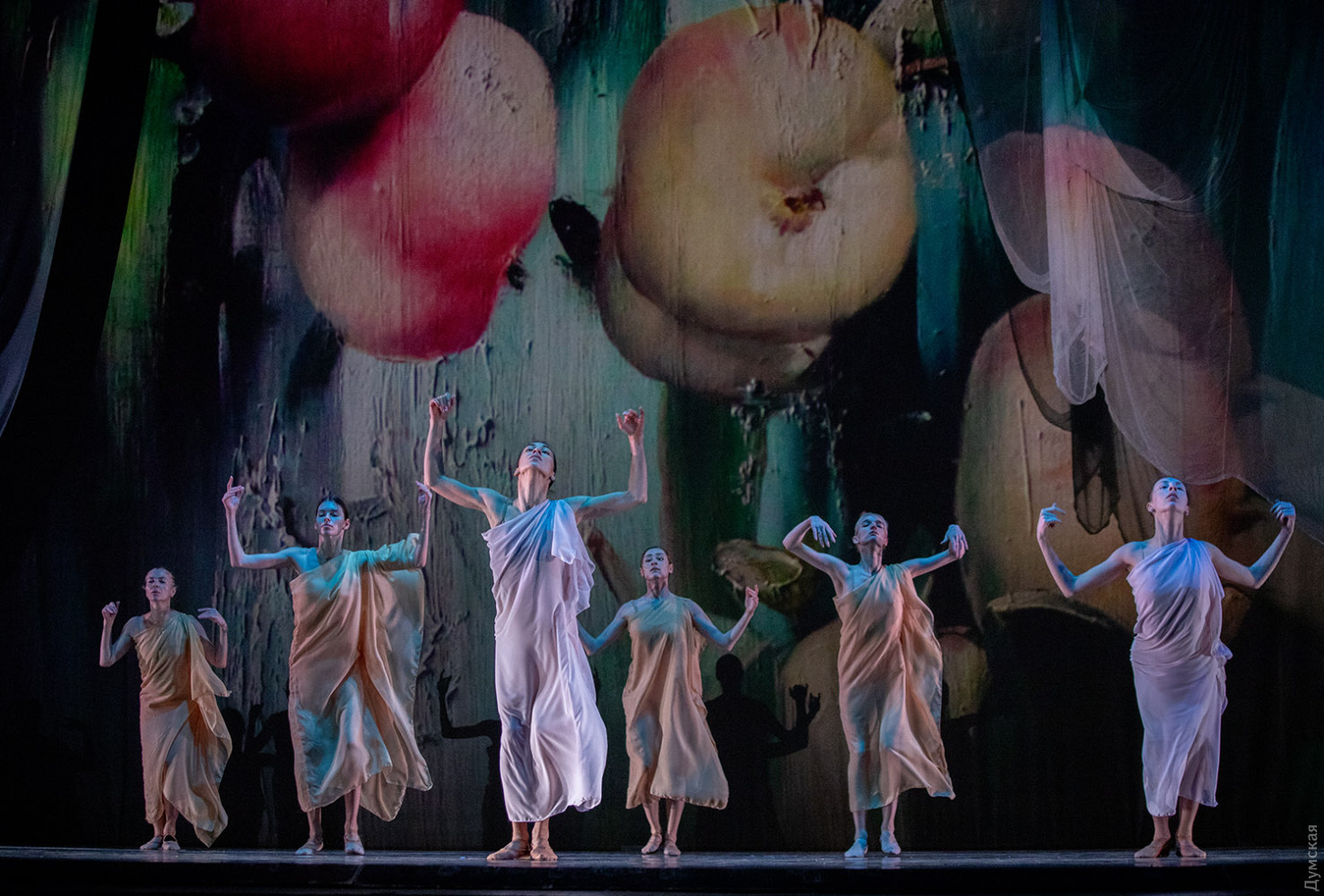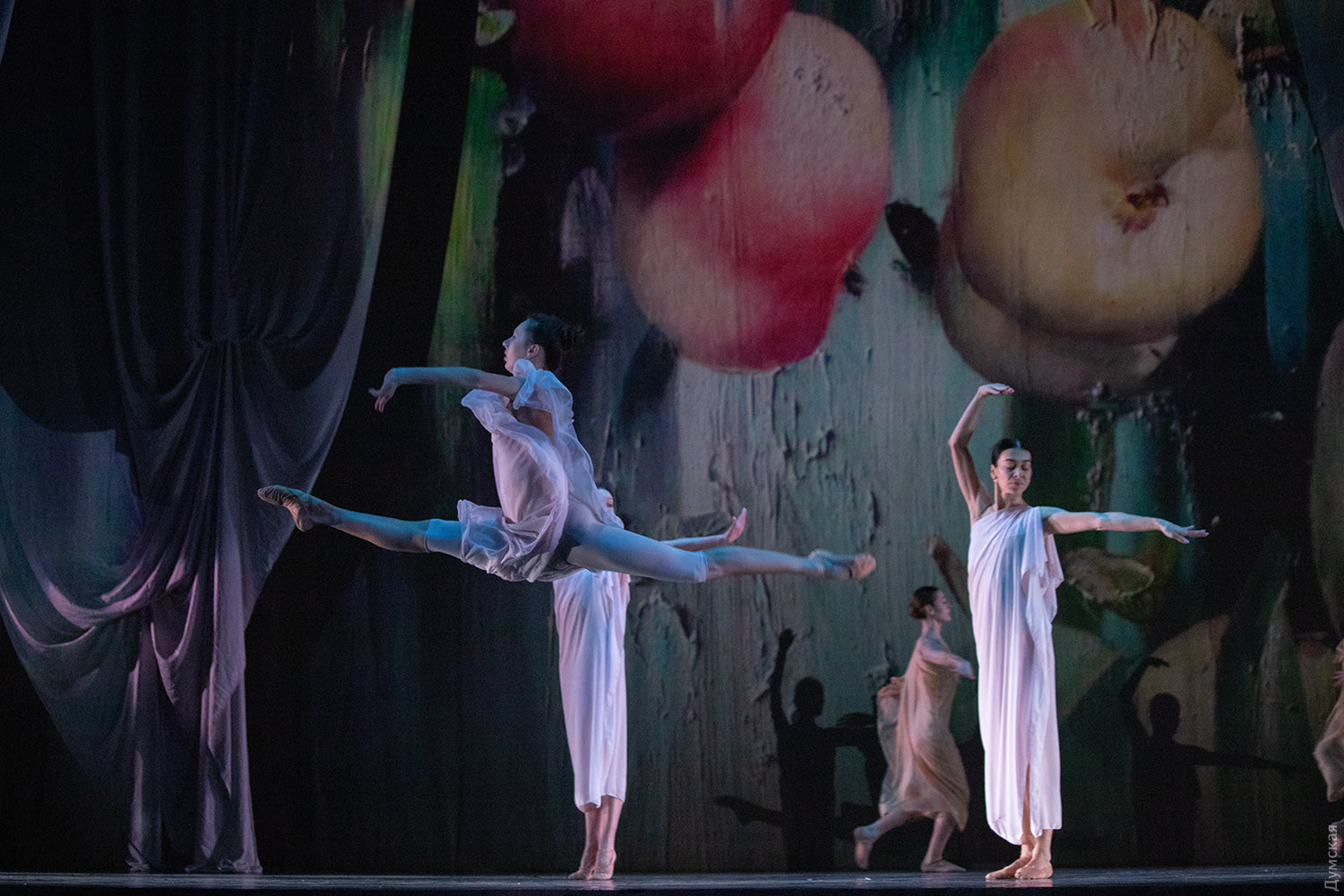 Премьера современного балетного перформанса в постановке заслуженного деятеля искусств Украины Олеси Шляхтич «Вдохновленные. ArtInspired» состоялась в одесской Опере в рамках вечера одноактных балетов Для авторов спектакля было важно, чтобы первый показ прошел именно в пятницу, 13-го. Этакий вызов суевериям! Перформанс состоит из одиннадцати хорео-новелл, раскрывающих путь человека. В них использованы картины современных украинских художников – Владислава Шерешевского, Петра Лебединца, Игоря Гусева и других. Они обращаются к публике прямо во время спектакля, словно оживляя собственные произведения при помощи закадрового голоса. Танцуют те конфликты, то подсознание, которые есть в каждом полотне, но не прямолинейно. Например, работу Вадима Кучера-Куцана с изображением персиков как отобразить в танце, ведь не будешь танцевать, представляя себя персиком, это же не сказочка о Чипполино и его друзьях! Но свежесть девичьих лиц и гибкой пластики наполняет сцену, и танец становится контрапунктом к живописи. С каждым художником авторы спектакля общались лично, и только за Кучера-Куцана, который уже не с нами, отвечала Ольга Куцан, она при его жизни была Вадиму женой и музой, часто дарила мужу цветы, а он их писал… Картина Николая Овсейко «Колесо» по замыслу художника напоминает о Сансаре, блуждании души от рождения до рождения, важности выбора и понимания порядка вещей. Взвешенности зрелого автора противостоит протестная абстрактная картина «Зачем?», которую написал Kit. Свою «Симфонию Калашникова» Василий Сад писал не кистью, это металл, продырявленный выстрелами. Фрагменты интервью с живописцами вплетены в ткань балетного спектакля. Олеся Шляхтич признается, что все ставит «с точки зрения любви», так что в лирических дуэтах нет недостатка. Дворник, такой себе демиург, со своей метлой взаимодействует с участниками всех сюжетов (солист ОНАТОБ из Греции ЭндриКендро уже примерялся к этой партии в перформансе «Катехизис», который в сентябре прошлого года стал первой попыткой соединить живопись, прямую речь художников и танец). По замыслу балетмейстера Дворник побуждает действующих лиц взяться за работу либо просто быть добрее друг к другу. Тут следует заметить, что этот персонаж сметает воображаемый мусор то в одну сторону, то в другую, не слишком тщательно выполняя свои прямые обязанности… Но и это не беда, зритель, в первую очередь зрительницы с ума сходят от красоты Дворника, и, наверное, ему стоило бы дать больше хореографии, метла, конечно, мешает, но ее можно отставить совсем или отдать кому-нибудь… «Из глубины мрака появляется усталый Дворник – обычный человек, которого мы привыкли не замечать, – пишется в балетном либретто. — Под каждым движением открывается чуть больше света, чуть больше цвета. То, что кажется будничным и незаметным, оставляет за собой живые следы из ярких красок – хрупкие вспышки жизни среди темноты… Дворник осторожно снимает черный фон, будто очищает наш мир от мусора и суеты, открывая путь к чистому пространству, ясности и смыслу». Проект «Вдохновленные» — это не просто балет, а внимательный взгляд внутрь себя через призму современного искусства. О том, почему движение становится единственным верным языком в мире, где стихают слова, очень точно сказано в описании к спектаклю: «… Коли слова художника ст