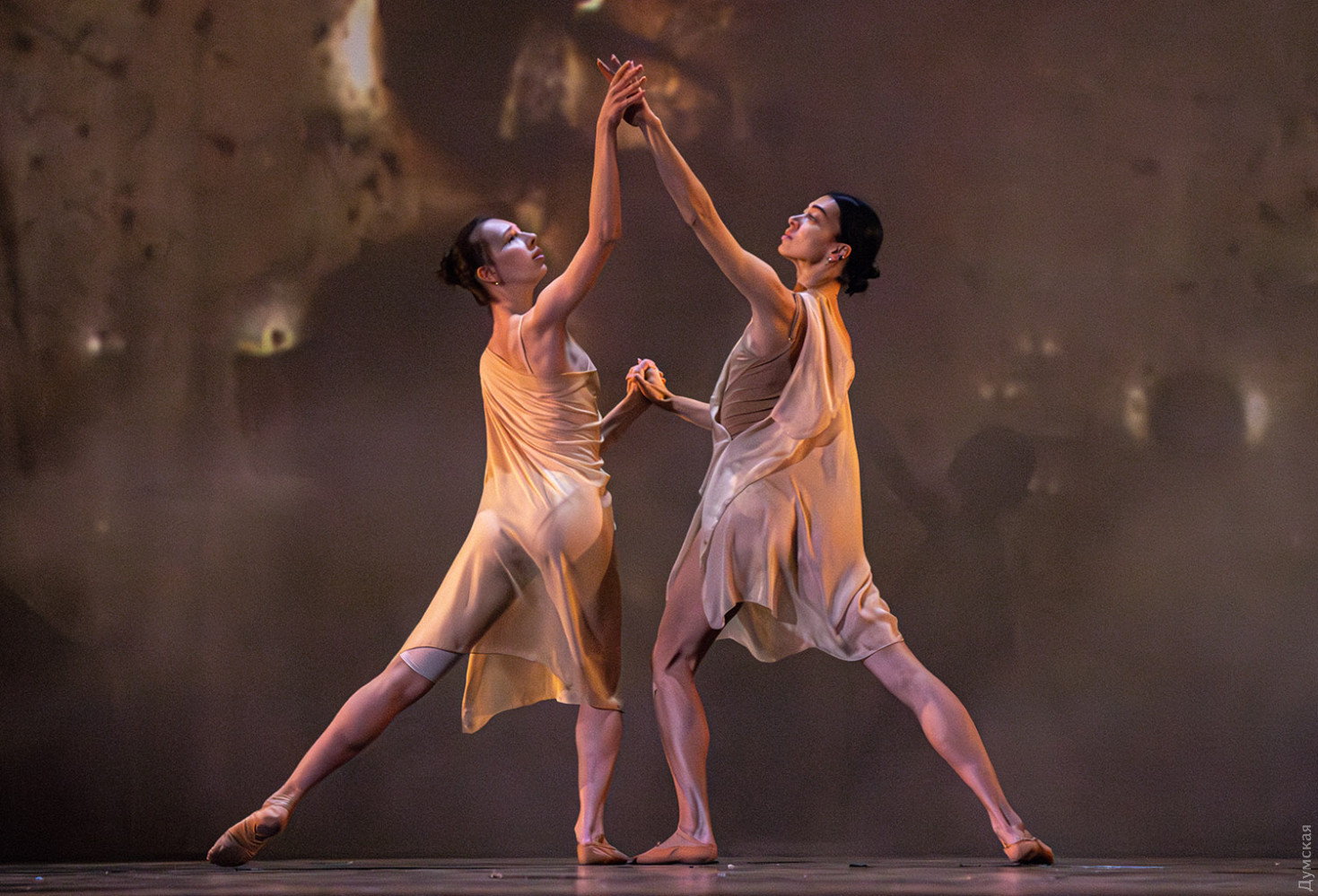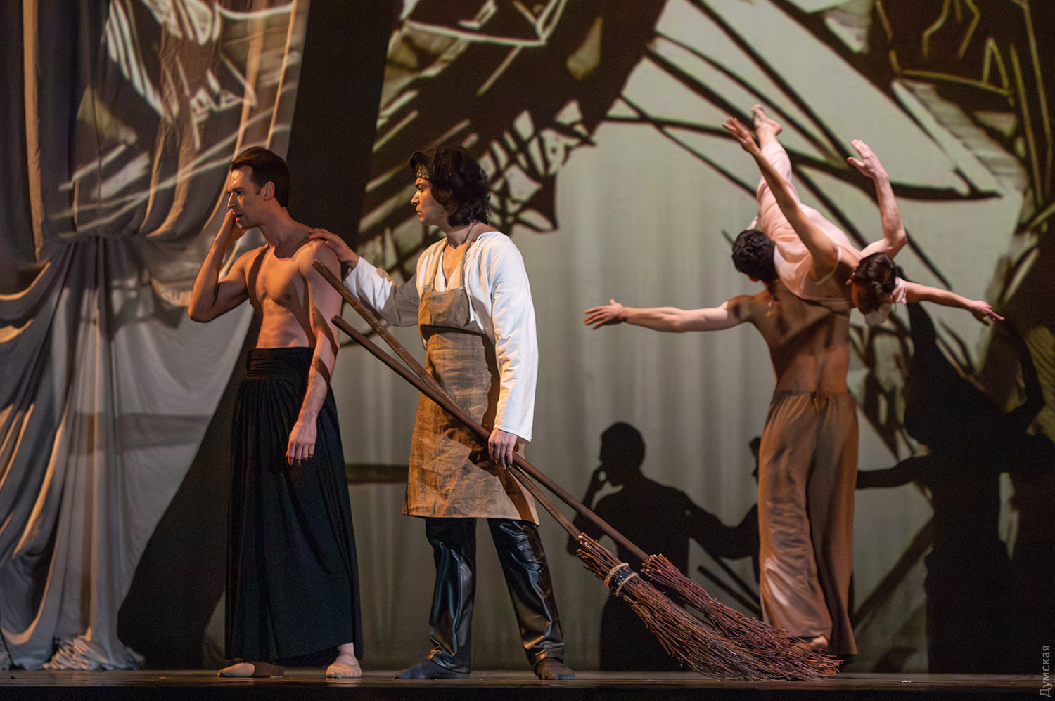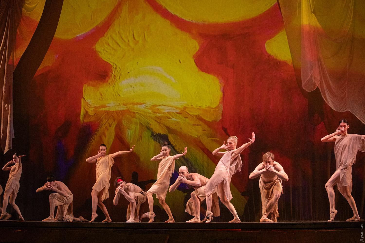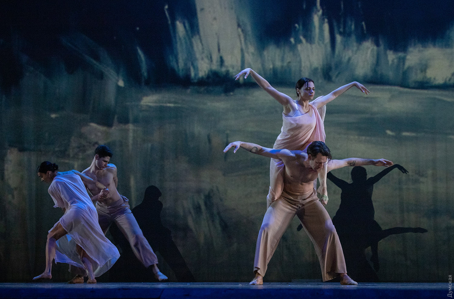 Премьера современного балетного перформанса в постановке заслуженного деятеля искусств Украины Олеси Шляхтич «Вдохновленные. ArtInspired» состоялась в одесской Опере в рамках вечера одноактных балетов Для авторов спектакля было важно, чтобы первый показ прошел именно в пятницу, 13-го. Этакий вызов суевериям! Перформанс состоит из одиннадцати хорео-новелл, раскрывающих путь человека. В них использованы картины современных украинских художников – Владислава Шерешевского, Петра Лебединца, Игоря Гусева и других. Они обращаются к публике прямо во время спектакля, словно оживляя собственные произведения при помощи закадрового голоса. Танцуют те конфликты, то подсознание, которые есть в каждом полотне, но не прямолинейно. Например, работу Вадима Кучера-Куцана с изображением персиков как отобразить в танце, ведь не будешь танцевать, представляя себя персиком, это же не сказочка о Чипполино и его друзьях! Но свежесть девичьих лиц и гибкой пластики наполняет сцену, и танец становится контрапунктом к живописи. С каждым художником авторы спектакля общались лично, и только за Кучера-Куцана, который уже не с нами, отвечала Ольга Куцан, она при его жизни была Вадиму женой и музой, часто дарила мужу цветы, а он их писал… Картина Николая Овсейко «Колесо» по замыслу художника напоминает о Сансаре, блуждании души от рождения до рождения, важности выбора и понимания порядка вещей. Взвешенности зрелого автора противостоит протестная абстрактная картина «Зачем?», которую написал Kit. Свою «Симфонию Калашникова» Василий Сад писал не кистью, это металл, продырявленный выстрелами. Фрагменты интервью с живописцами вплетены в ткань балетного спектакля. Олеся Шляхтич признается, что все ставит «с точки зрения любви», так что в лирических дуэтах нет недостатка. Дворник, такой себе демиург, со своей метлой взаимодействует с участниками всех сюжетов (солист ОНАТОБ из Греции ЭндриКендро уже примерялся к этой партии в перформансе «Катехизис», который в сентябре прошлого года стал первой попыткой соединить живопись, прямую речь художников и танец). По замыслу балетмейстера Дворник побуждает действующих лиц взяться за работу либо просто быть добрее друг к другу. Тут следует заметить, что этот персонаж сметает воображаемый мусор то в одну сторону, то в другую, не слишком тщательно выполняя свои прямые обязанности… Но и это не беда, зритель, в первую очередь зрительницы с ума сходят от красоты Дворника, и, наверное, ему стоило бы дать больше хореографии, метла, конечно, мешает, но ее можно отставить совсем или отдать кому-нибудь… «Из глубины мрака появляется усталый Дворник – обычный человек, которого мы привыкли не замечать, – пишется в балетном либретто. — Под каждым движением открывается чуть больше света, чуть больше цвета. То, что кажется будничным и незаметным, оставляет за собой живые следы из ярких красок – хрупкие вспышки жизни среди темноты… Дворник осторожно снимает черный фон, будто очищает наш мир от мусора и суеты, открывая путь к чистому пространству, ясности и смыслу». Проект «Вдохновленные» — это не просто балет, а внимательный взгляд внутрь себя через призму современного искусства. О том, почему движение становится единственным верным языком в мире, где стихают слова, очень точно сказано в описании к спектаклю: «… Коли слова художника ст