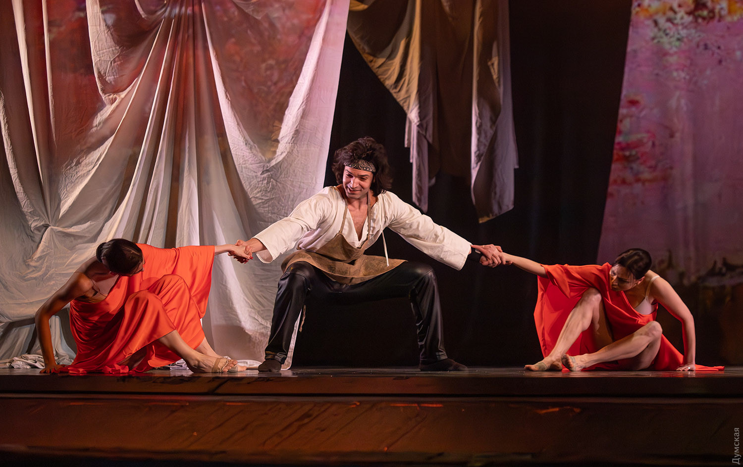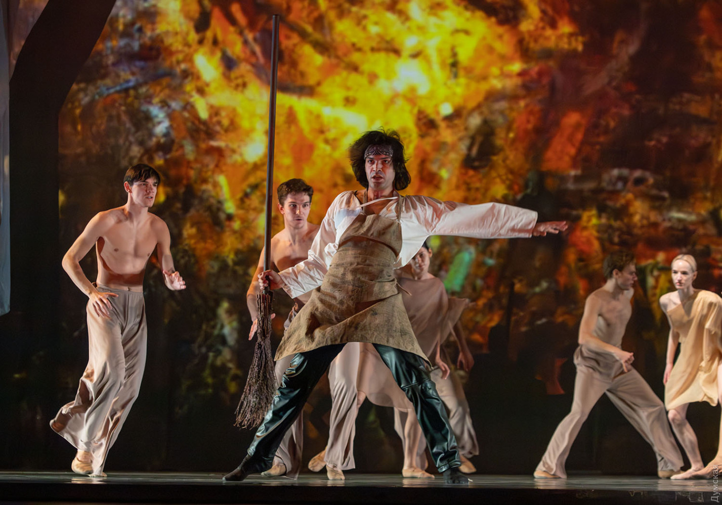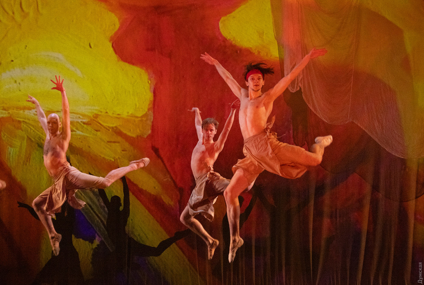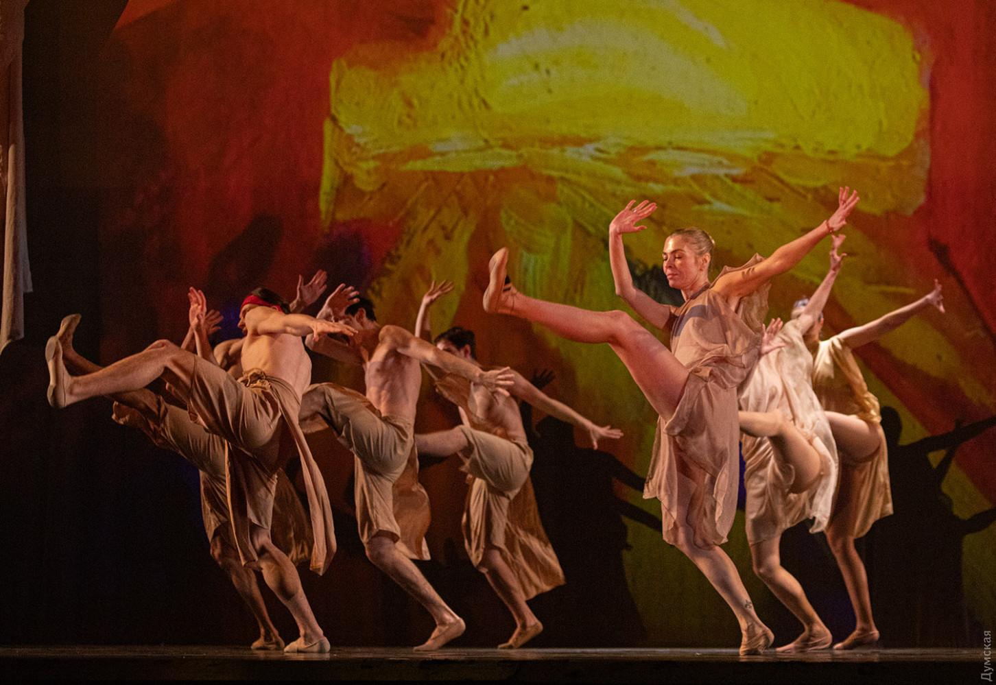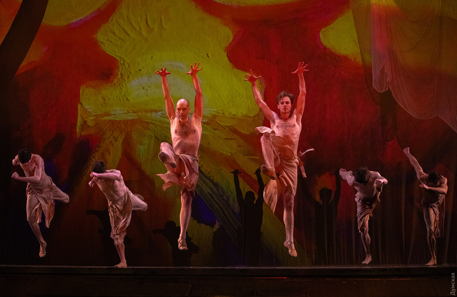 Премьера современного балетного перформанса в постановке заслуженного деятеля искусств Украины Олеси Шляхтич «Вдохновленные. ArtInspired» состоялась в одесской Опере в рамках вечера одноактных балетов Для авторов спектакля было важно, чтобы первый показ прошел именно в пятницу, 13-го. Этакий вызов суевериям! Перформанс состоит из одиннадцати хорео-новелл, раскрывающих путь человека. В них использованы картины современных украинских художников – Владислава Шерешевского, Петра Лебединца, Игоря Гусева и других. Они обращаются к публике прямо во время спектакля, словно оживляя собственные произведения при помощи закадрового голоса. Танцуют те конфликты, то подсознание, которые есть в каждом полотне, но не прямолинейно. Например, работу Вадима Кучера-Куцана с изображением персиков как отобразить в танце, ведь не будешь танцевать, представляя себя персиком, это же не сказочка о Чипполино и его друзьях! Но свежесть девичьих лиц и гибкой пластики наполняет сцену, и танец становится контрапунктом к живописи. С каждым художником авторы спектакля общались лично, и только за Кучера-Куцана, который уже не с нами, отвечала Ольга Куцан, она при его жизни была Вадиму женой и музой, часто дарила мужу цветы, а он их писал… Картина Николая Овсейко «Колесо» по замыслу художника напоминает о Сансаре, блуждании души от рождения до рождения, важности выбора и понимания порядка вещей. Взвешенности зрелого автора противостоит протестная абстрактная картина «Зачем?», которую написал Kit. Свою «Симфонию Калашникова» Василий Сад писал не кистью, это металл, продырявленный выстрелами. Фрагменты интервью с живописцами вплетены в ткань балетного спектакля. Олеся Шляхтич признается, что все ставит «с точки зрения любви», так что в лирических дуэтах нет недостатка. Дворник, такой себе демиург, со своей метлой взаимодействует с участниками всех сюжетов (солист ОНАТОБ из Греции ЭндриКендро уже примерялся к этой партии в перформансе «Катехизис», который в сентябре прошлого года стал первой попыткой соединить живопись, прямую речь художников и танец). По замыслу балетмейстера Дворник побуждает действующих лиц взяться за работу либо просто быть добрее друг к другу. Тут следует заметить, что этот персонаж сметает воображаемый мусор то в одну сторону, то в другую, не слишком тщательно выполняя свои прямые обязанности… Но и это не беда, зритель, в первую очередь зрительницы с ума сходят от красоты Дворника, и, наверное, ему стоило бы дать больше хореографии, метла, конечно, мешает, но ее можно отставить совсем или отдать кому-нибудь… «Из глубины мрака появляется усталый Дворник – обычный человек, которого мы привыкли не замечать, – пишется в балетном либретто. — Под каждым движением открывается чуть больше света, чуть больше цвета. То, что кажется будничным и незаметным, оставляет за собой живые следы из ярких красок – хрупкие вспышки жизни среди темноты… Дворник осторожно снимает черный фон, будто очищает наш мир от мусора и суеты, открывая путь к чистому пространству, ясности и смыслу». Проект «Вдохновленные» — это не просто балет, а внимательный взгляд внутрь себя через призму современного искусства. О том, почему движение становится единственным верным языком в мире, где стихают слова, очень точно сказано в описании к спектаклю: «… Коли слова художника ст