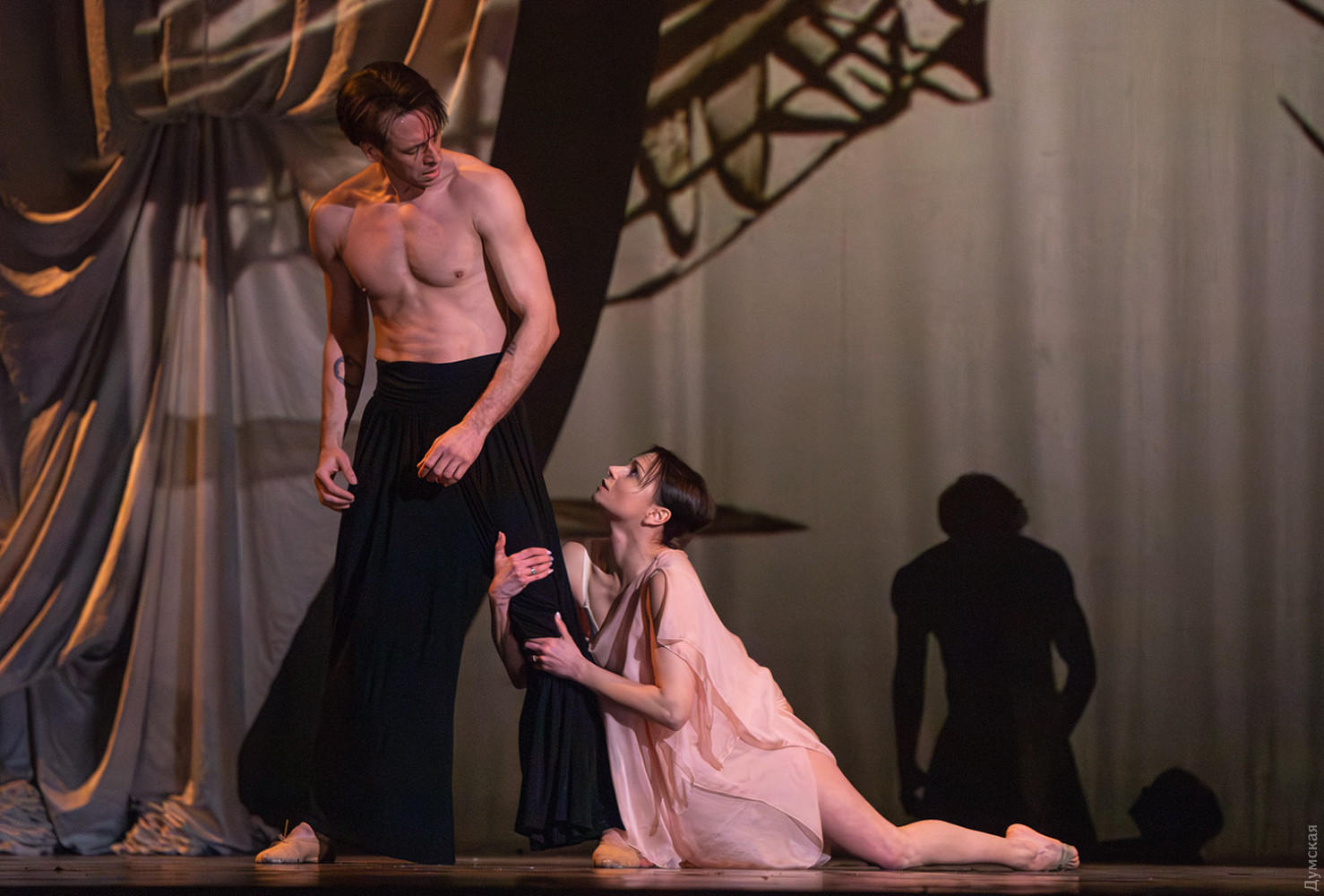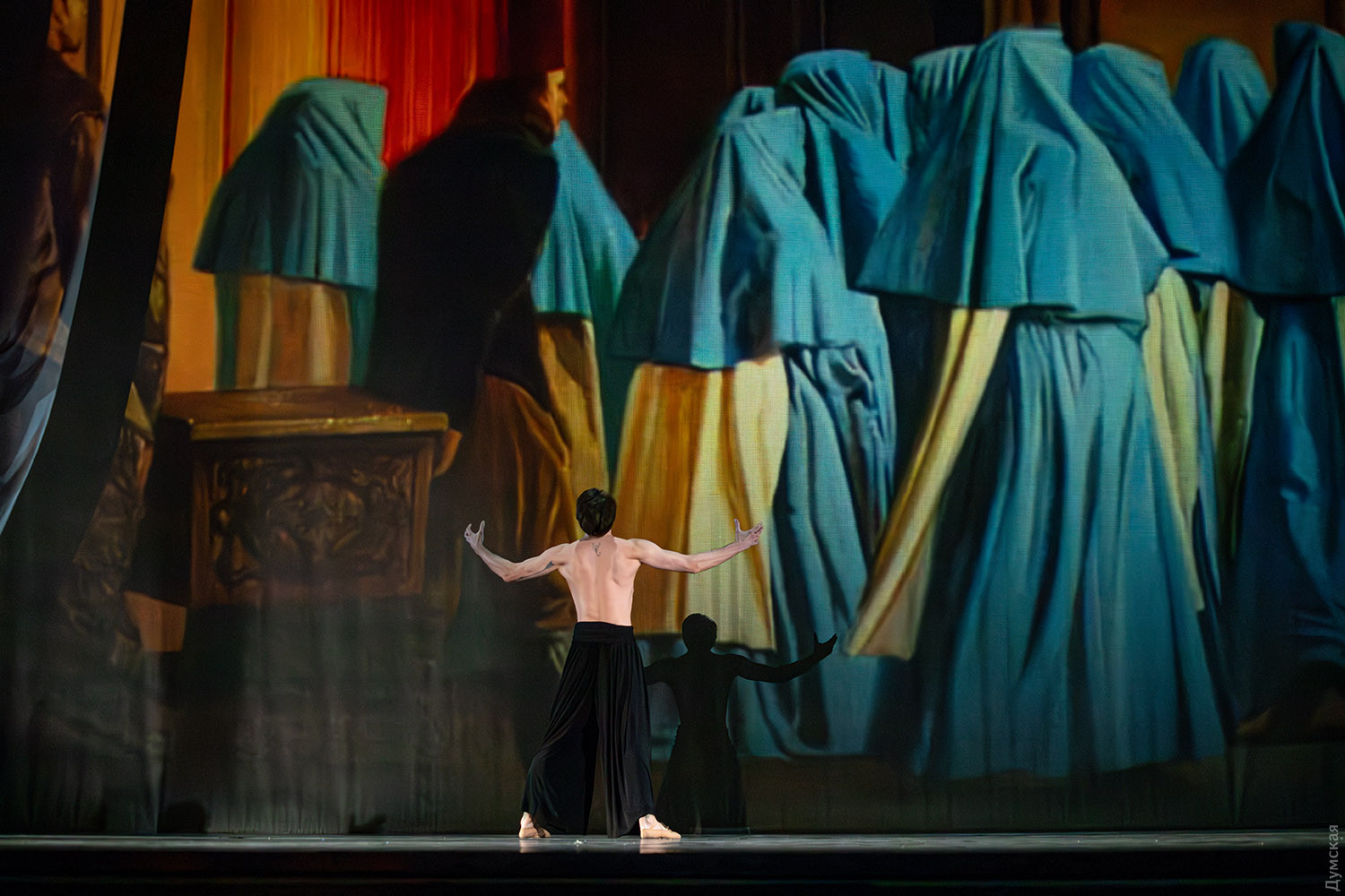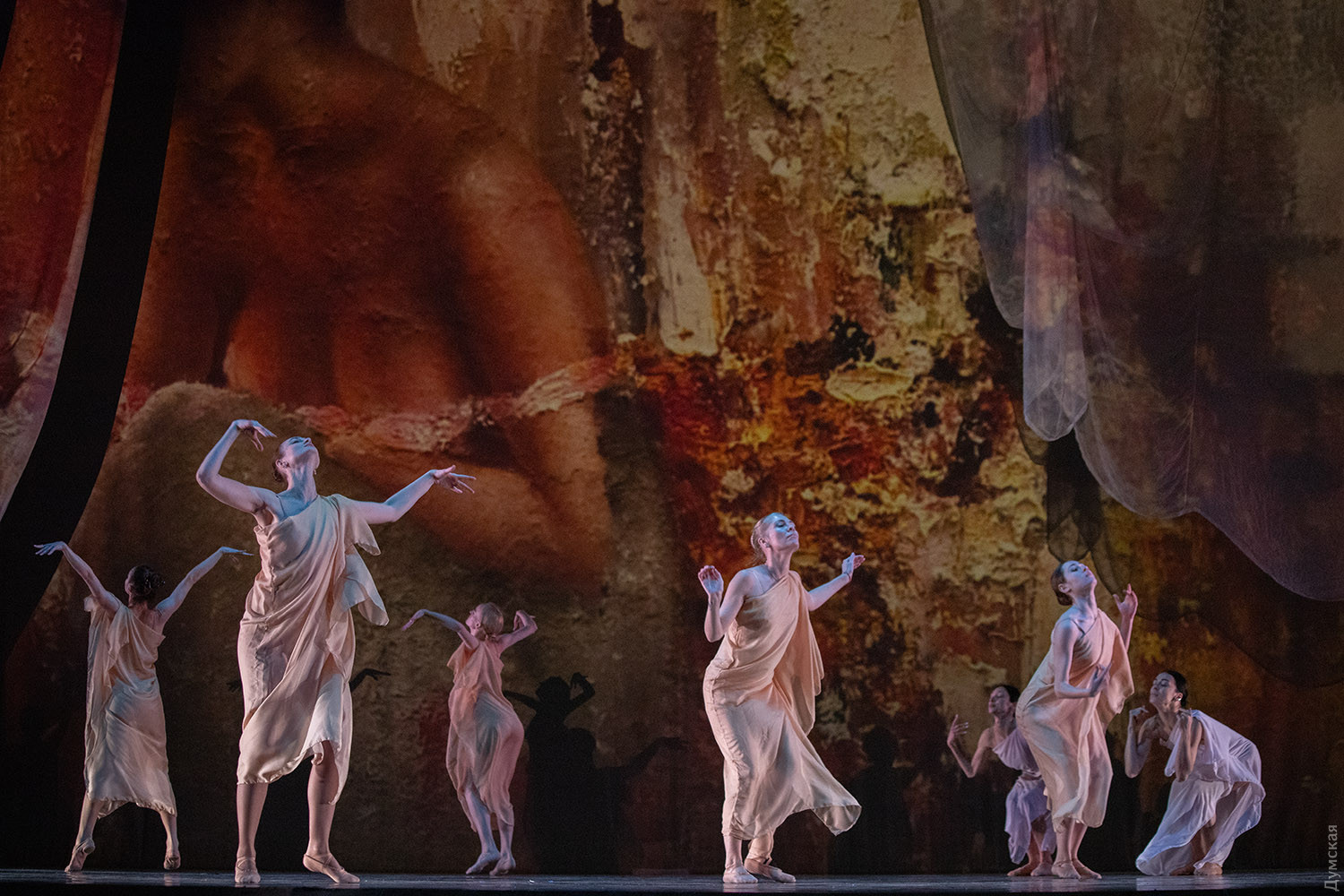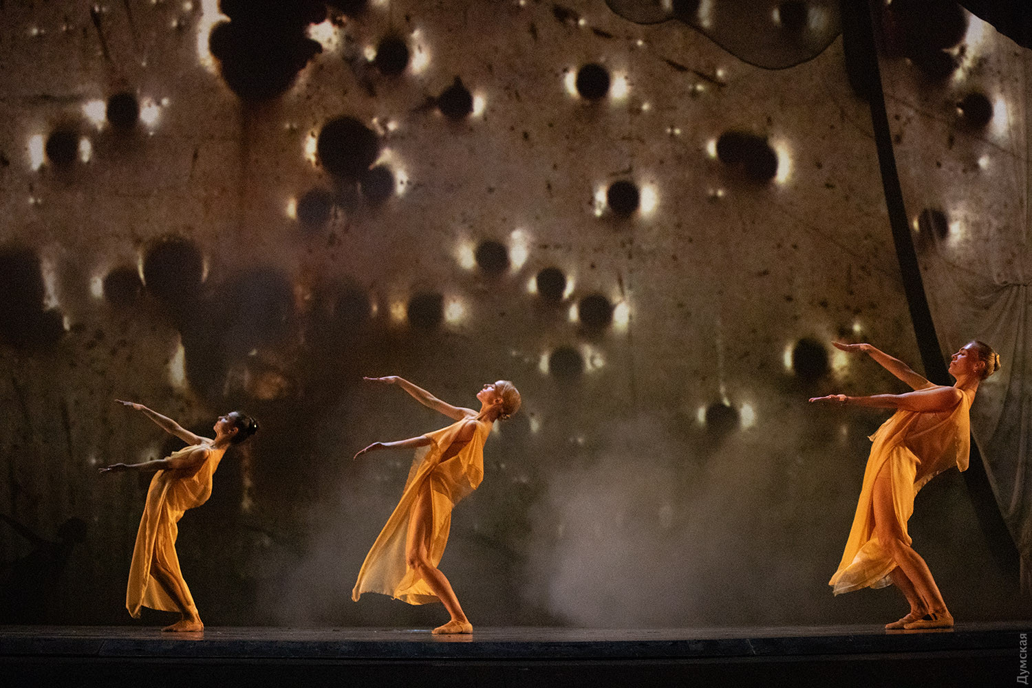 Премьера современного балетного перформанса в постановке заслуженного деятеля искусств Украины Олеси Шляхтич «Вдохновленные. ArtInspired» состоялась в одесской Опере в рамках вечера одноактных балетов Для авторов спектакля было важно, чтобы первый показ прошел именно в пятницу, 13-го. Этакий вызов суевериям! Перформанс состоит из одиннадцати хорео-новелл, раскрывающих путь человека. В них использованы картины современных украинских художников – Владислава Шерешевского, Петра Лебединца, Игоря Гусева и других. Они обращаются к публике прямо во время спектакля, словно оживляя собственные произведения при помощи закадрового голоса. Танцуют те конфликты, то подсознание, которые есть в каждом полотне, но не прямолинейно. Например, работу Вадима Кучера-Куцана с изображением персиков как отобразить в танце, ведь не будешь танцевать, представляя себя персиком, это же не сказочка о Чипполино и его друзьях! Но свежесть девичьих лиц и гибкой пластики наполняет сцену, и танец становится контрапунктом к живописи. С каждым художником авторы спектакля общались лично, и только за Кучера-Куцана, который уже не с нами, отвечала Ольга Куцан, она при его жизни была Вадиму женой и музой, часто дарила мужу цветы, а он их писал… Картина Николая Овсейко «Колесо» по замыслу художника напоминает о Сансаре, блуждании души от рождения до рождения, важности выбора и понимания порядка вещей. Взвешенности зрелого автора противостоит протестная абстрактная картина «Зачем?», которую написал Kit. Свою «Симфонию Калашникова» Василий Сад писал не кистью, это металл, продырявленный выстрелами. Фрагменты интервью с живописцами вплетены в ткань балетного спектакля. Олеся Шляхтич признается, что все ставит «с точки зрения любви», так что в лирических дуэтах нет недостатка. Дворник, такой себе демиург, со своей метлой взаимодействует с участниками всех сюжетов (солист ОНАТОБ из Греции ЭндриКендро уже примерялся к этой партии в перформансе «Катехизис», который в сентябре прошлого года стал первой попыткой соединить живопись, прямую речь художников и танец). По замыслу балетмейстера Дворник побуждает действующих лиц взяться за работу либо просто быть добрее друг к другу. Тут следует заметить, что этот персонаж сметает воображаемый мусор то в одну сторону, то в другую, не слишком тщательно выполняя свои прямые обязанности… Но и это не беда, зритель, в первую очередь зрительницы с ума сходят от красоты Дворника, и, наверное, ему стоило бы дать больше хореографии, метла, конечно, мешает, но ее можно отставить совсем или отдать кому-нибудь… «Из глубины мрака появляется усталый Дворник – обычный человек, которого мы привыкли не замечать, – пишется в балетном либретто. — Под каждым движением открывается чуть больше света, чуть больше цвета. То, что кажется будничным и незаметным, оставляет за собой живые следы из ярких красок – хрупкие вспышки жизни среди темноты… Дворник осторожно снимает черный фон, будто очищает наш мир от мусора и суеты, открывая путь к чистому пространству, ясности и смыслу». Проект «Вдохновленные» — это не просто балет, а внимательный взгляд внутрь себя через призму современного искусства. О том, почему движение становится единственным верным языком в мире, где стихают слова, очень точно сказано в описании к спектаклю: «… Коли слова художника ст