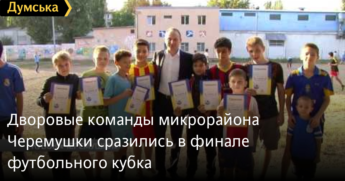 Лучшую футбольную дворовую команду микрорайона «Черемушки» определили в воскресенье. Двенадцать команд приняли участие в спортивных состязаниях. Мероприятие прошло при поддержке кандидата в депутаты Одесского областного совета от партии «Солидарность» Блок Петра Порошенко Андрея Ивашова СМЕРТЬ РОССИЙСКИМ ОККУПАНТАМ! Заметили ошибку? Выделяйте слова с ошибкой и нажимайте control-enter