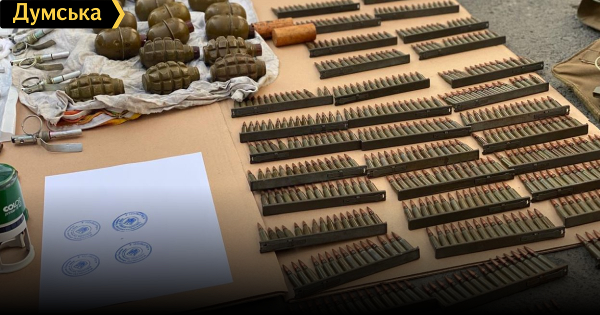 В Офисе генерального прокурора сообщили, что во время досудебного расследования правоохранители задокументировали сбыт автомата АСК74У, ММГ пистолета Макарова, который был переделан под отстрел боевых патронов, 75 патронов калибра 9х18 мм, более 2600 патронов калибра 5,45х39 мм, более 2100 патронов калибра 7,62 мм, 10 запалов ручных гранат, 200 граммов тротила, 15 патронов для пулемета Дегтярева, пять гранат Ф-1, три дымовые шашки и несколько бронежилетов.