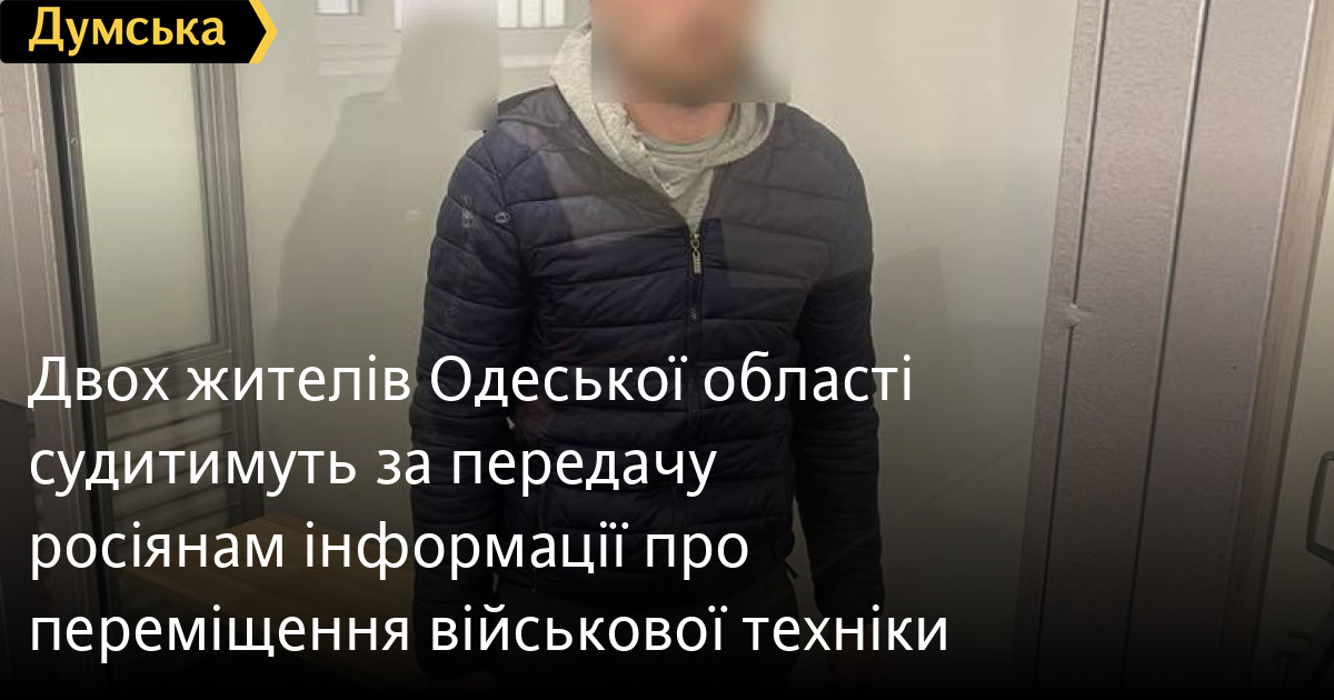 Двох жителів Одеської області судитимуть за передачу росіянам інформації про переміщення військової технікиСлідство скерувало до суду обвинувальний акт щодо жителя Крижанівки та його товариша, які знімали на відео колони військової техніки, які проїжджали повз. У прокуратурі повідомили, що фігуранти надсилали записи знайомому громадянину рф, розуміючи, що ця інформація буде використана ворогом для завдання шкоди Україні. Обидва затриманих зараз перебувають у СІЗО. Дії чоловіків кваліфікували за ст.114-2 Кримінального кодексу України (несанкціоноване поширення інформації про переміщення Збройних сил України). СМЕРТЬ РОСІЙСЬКИМ ОКУПАНТАМ! Помітили помилку? Виділяйте слова з помилкою та натискайте control-enter |