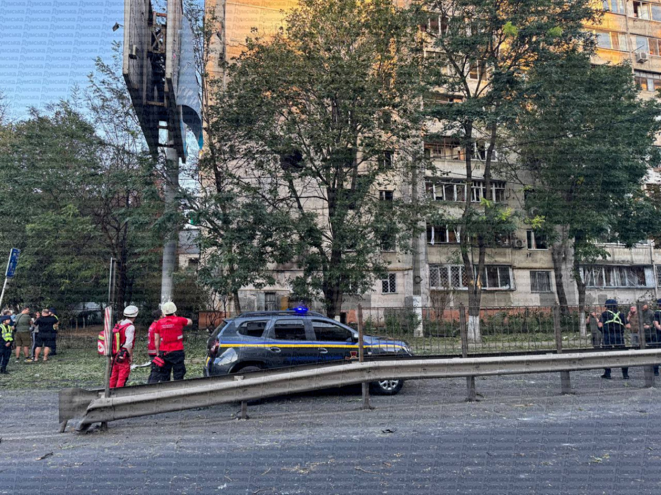 Прямо в бетонну стіну багатоквартирного будинку на вулиці Середньофонтанській влетів російський дрон під час атаки на місто. За 10 хвилин до цього мешканці постраждалої квартири спустилися в укриття і залишилися неушкодженими, передає кореспондент «Думської». Практично у всьому будинку повибивало вікна і двері. Мешканка однієї з квартир розповіла, що її сім'я встигла сховатися в паркінгу в сусідній висотці. Повернувшись додому, жінка побачила, що шибки вилетіли прямо на дитяче ліжечко, де мала спати дитина. Вулиця в бік Таїрова перекрита. За попередньою інформацією, в результаті масованої атаки на цій локації дві людини постраждали. Їх оглянули медики, госпіталізація не знадобилася. Загалом у місті постраждалих троє. Також постраждав Палац спорту, був приліт у житловий будинок. На останніх поверхах виникла пожежа. Комунальні служби ліквідують наслідки, на місцях розгортають оперативні штаби. СМЕРТЬ РОСІЙСЬКИМ ОКУПАНТАМ! Помітили помилку? Виділяйте слова з помилкою та натискайте control-enter |