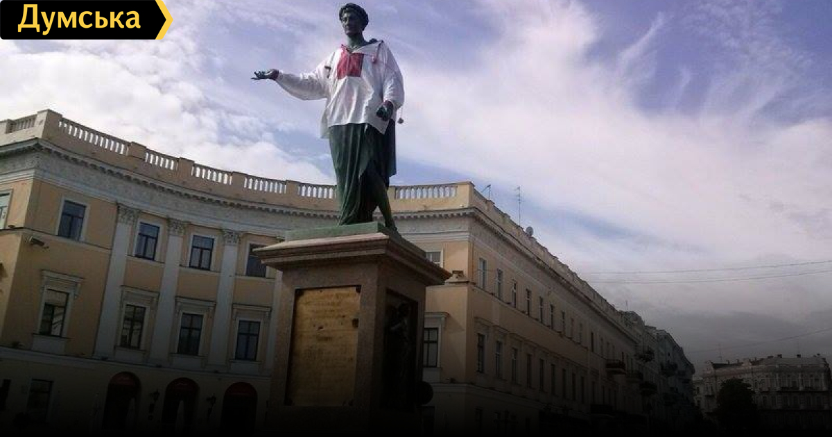 АпартеиД 16:44, позволь напомнить, что Одесса это Украина и ничего зазорного в том, что памятнику надели национальный костюм, а то что это не нравится адептам северо-восточного обезъянника так это не наша проблема, в Мордоре есть свободные места.
