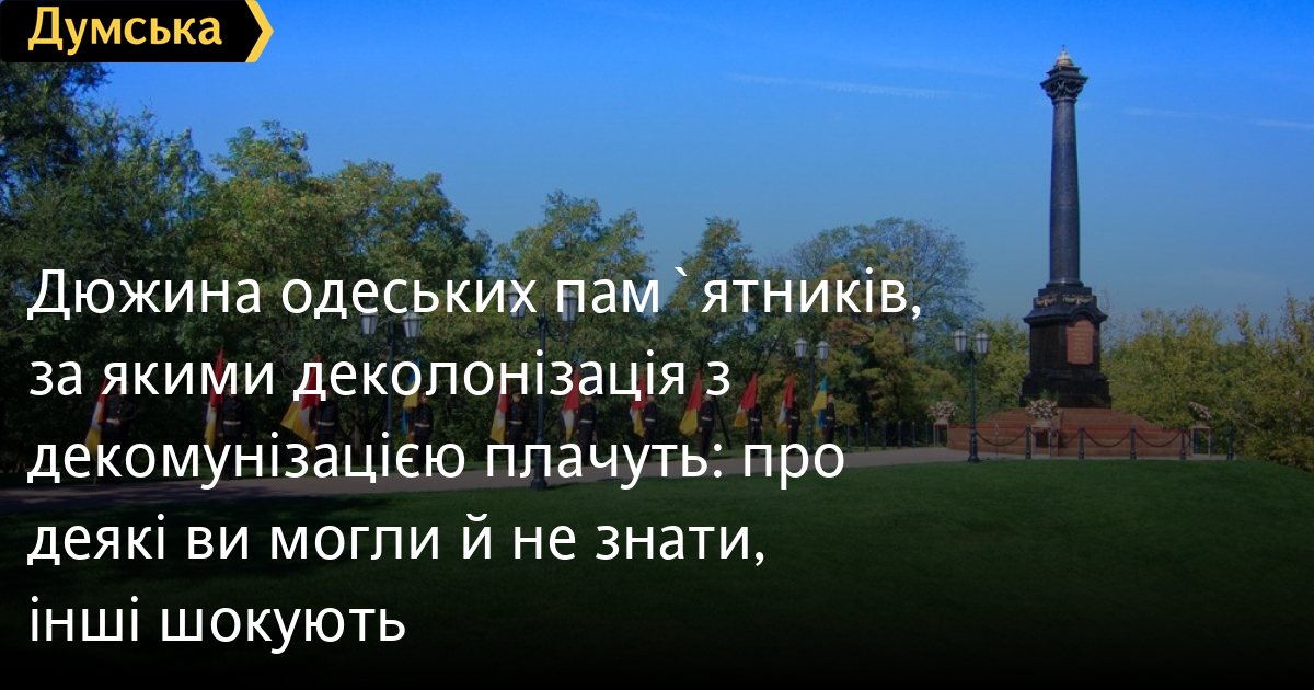 Редакторка Алія Замчинська зібрала дюжину (насправді, більше) претендентів. Зазначимо, «Думська» не підтримує декомунізацію або деколонізацію кожного з них. Але потенційно під ударом усі. Винен у цьому і законодавець, який написав критерії дупою нечітко, і муніципалітет, який не поспішає в принципі хоч якось виконувати неідеальний закон, та й обладміністрація постаралася — відсутність логіки та послідовності у висновках робочої групи, яка готувала матеріали для розпорядження губернатора, робить майбутні кроки просто непередбачуваними. Підозрюючи щось таке, виконком видав свій список. Не те, щоб зазначені в ньому об'єкти знесуть уже завтра, але як би хоч ляжуть у той бік.