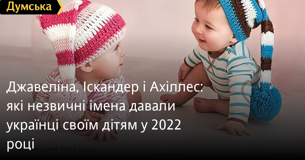 Джавеліна, Іскандер і Ахіллес: які незвичні імена давали українці своїм дітям у 2022 роціПерелік найпопулярніших та найнезвичайніших імен, якими називали своїх дітей українські батьки у другому півріччі 2022 року, оприлюднило Міністерство юстиції. Так, найпопулярнішими жіночими іменами стали Анна, Анастасія, Вероніка, Софія, Олександра, Марія, Вікторія, Мілана, Соломія, Варвара, Єва. Найпоширенішими чоловічими іменами були Артем, Дмитро, Іван, Максим, Михайло, Данило, Владислав, Олександр, Андрій. Були і ті батьки, які обрали для своїх малюків набагато оригінальніші варіанти. Серед жіночих імен це Мрія, Луна, Авіталь-Азаліна, Мєр'єла, Сладіслава, Квіта, Ульпана, Мантикора, Ніколоз, Русаліна, Юнія, Джавеліна. Серед чоловічих: Іскандер, Воліслав, Марс, Велеслав, Ахіллес, Сармат, Світозар, Нимрод, Калеп, Ларс, Саркіс, Стиліан, Х'юго, Нікодим, Нектарій. Помітили помилку? Виділяйте слова з помилкою та натискайте control-enter |
