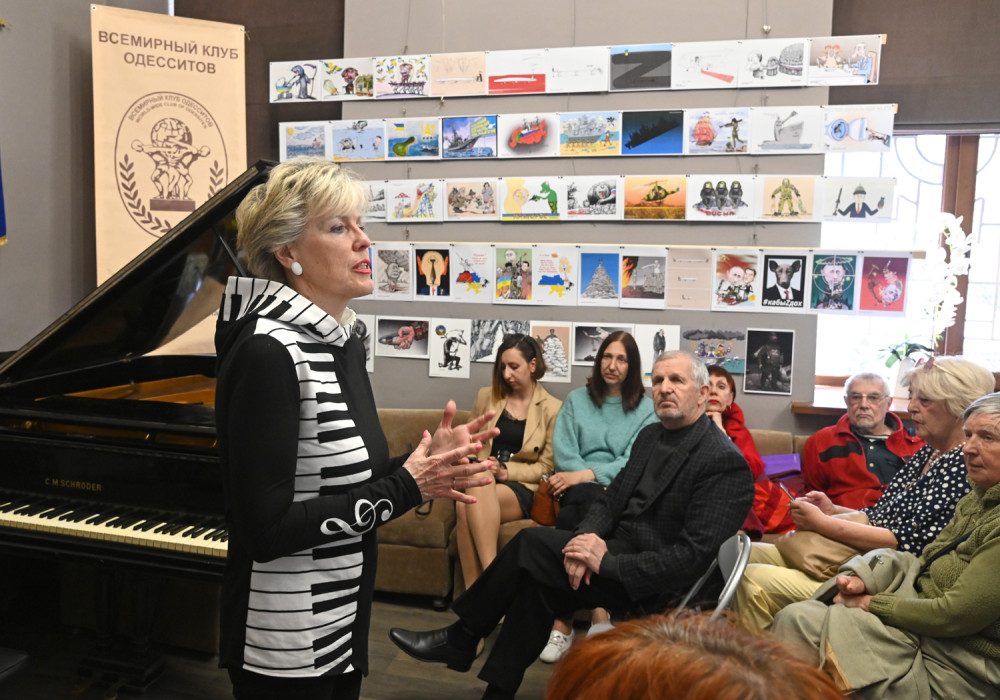 Напоминаем, что фоном и декорацией для всех благотворительных мероприятий в клубе сейчас является международная выставка антивоенной карикатуры, авторами которой стали художники из Украины, Израиля, Польши, Греции, Германии, Белоруссии, Румынии, России, Индии, Швеции, Нидерландов, США, Франции, Австрии.