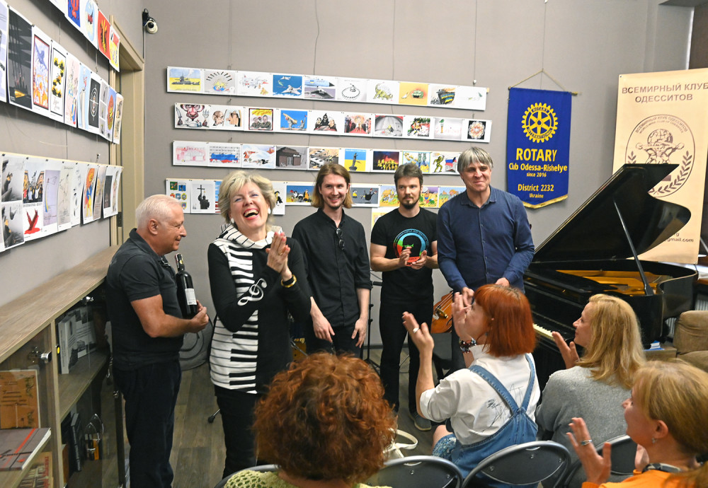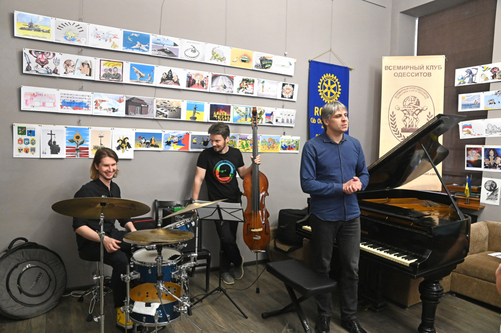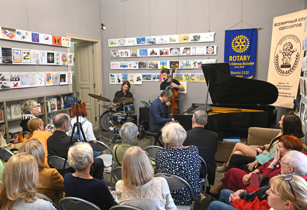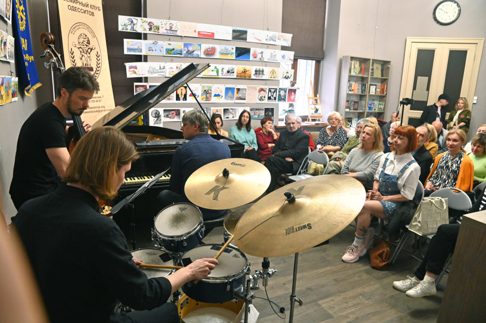 В зале Всемирного клуба одесситов звучал джаз – здесь состоялся благотворительный концерт, средства от проведения которого, как и добровольные пожертвования из-за рубежа, пошли в помощь территориальной обороне Одессы.