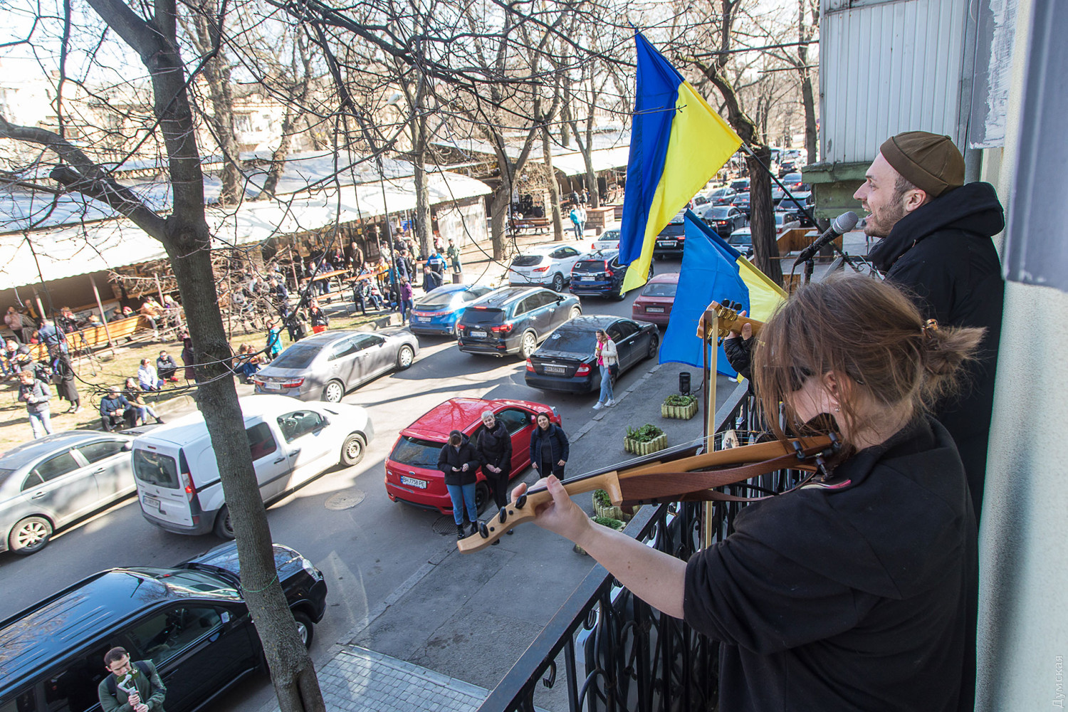 Джаз на балконе: возле легендарной «Книжки»: одесские музыканты играли и пели прямо из окон театраНеобычный концерт прошел вчера днем возле легендарного одесского рынка «Книжка», что на Александровском проспекте. Сценой для выступления одесских музыкантов стали балконы театра «Перрон №7», в доме под 16-м номером, а зрительным залом – собственно книжный базар, который с трудом смог вместить всех желающих насладиться выступлением. С балкона звучали джазовые и блюзовые стандарты от трио Ярослава Трофимова и дуэта Авелины Цеховаловой и Александра Ковалева, сатирический фольклор и современный городской романс от Александры Лосевой и Романа Капитонова. Джазовой обработке подверглись такие известные одесские хиты, как «У Черного моря», «Шаланды полные кефали» и «Ах, Одесса – жемчужина у моря». Последний, к слову, исполнялся на государственном языке, что с восторгом восприняла собравшаяся публика. Как рассказал «Думской» создатель «Перрона №7», музыкант, певец, режиссер Ярослав Трофимов – это уже второй подобный концерт. «Мы переехали в это здание в сентябре прошлого года, — рассказывает Ярослав. – Из-за войны пришлось отменить пять спектаклей, билеты на которые были уже проданы. Большинство людей, купивших билеты, согласились, чтобы мы от их лица перевели эти деньги на помощь ВСУ. Теперь, когда наш тыловой город начинает понемногу оживать, мы решили поднять настроение и боевой дух одесситов музыкой». Концерт совпал с очередной воздушной тревогой, что, впрочем, не испугало завсегдатаев «Книжки», которая за долгие годы своей работы привыкла к разным налетам, хоть и не воздушным. Исполнители радовали одесситов своим творчеством почти два часа. Отметим, что собранные по системе free-donate средства пойдут в специальный фонд, который помогает артистам, оставшимся без средств к существованию. P.S. 27 марта в 14:00 там же, на Александровском проспекте, 16 пройдут театральные чтения. Профессиональные актеры прочтут произведения Леся Подервянского, Михаила Жванецкого, Владимира Жаботинского, Остапа Вишни и других. Автор — Александр Гиманов СМЕРТЬ РОССИЙСКИМ ОККУПАНТАМ! Заметили ошибку? Выделяйте слова с ошибкой и нажимайте control-enter |