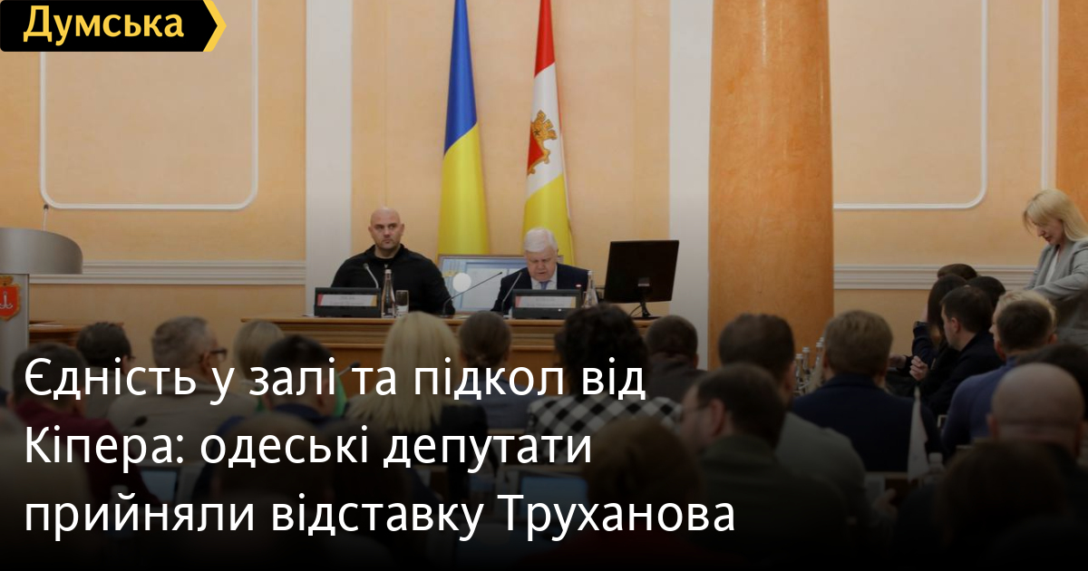 Єдність у залі та підкол від Кіпера: одеські депутати прийняли «відставку» ТрухановаІнформацію про те, що Геннадій Труханов втратив українське громадянство, взяв до відома депутатський корпус під час сесії міськради. Цієї здавалося б формальності вимагає Закон України «Про місцеве самоврядування», передає кореспондент «Думської». Перед голосуванням на трибуну вийшов керівник фракції «Довіряй справам» у міськраді Олег Етнарович. Він заявив, що він і його колеги по партії завжди керувалися інтересами одеситів і здоровим глуздом, і ігнорувати ситуацію з Трухановим не збираються. Таким чином він дав зрозуміти, що «довіряйці» не мають наміру влаштовувати демарш і зривати голосування. «Тим більше, що все це, а також запис у трудовій книжці наближає можливість подачі позову до суду, що дозволить Геннадію Труханову повернути громадянство, тому що правда завжди перемагає», — зазначив він. Після цього всі 46 депутатів, які були присутні в залі, «взяли до відома» інформацію, натиснувши кнопки. Голова обласної військової адміністрації Олег Кіпер, який теж відвідав сесію, не втримався від уїдливості на адресу ексмера. «У ЗМІ були питання, а що буде з депутатами. Ви бачите, облрада працює, міськрада працює, в громадах працюють, всі, хто хоче працювати — працюють. Я сьогодні, напевно, вперше на сесії, ви запитаєте, чому не ходив раніше? А навіщо? Щоб вислуховувати ябедничання на тему, що нам не дають працювати і перетворювати Одесу на Сінгапур? Я дуже сентиментальна людина і не витримав би цього. Сьогодні ж у нас є всі необхідні механізми для ефективних дій», — підкреслив Кіпер. СМЕРТЬ РОСІЙСЬКИМ ОКУПАНТАМ! Помітили помилку? Виділяйте слова з помилкою та натискайте control-enter
