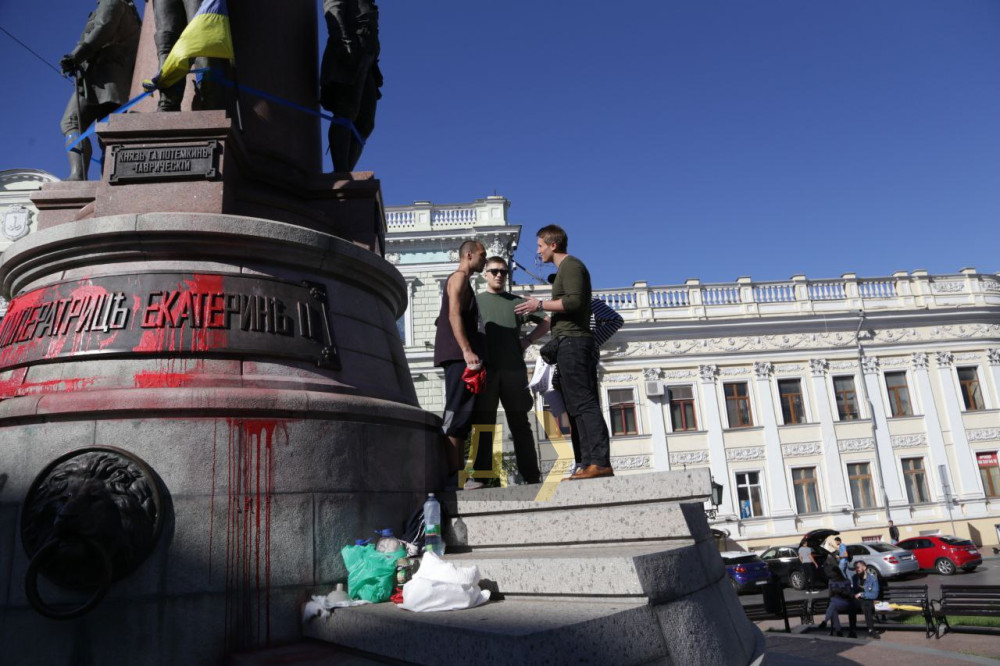 Близько 20 одеситів зібралося біля пам'ятника Катерині Другій, щоб висловити свою позицію щодо подальшої долі пам'ятника.