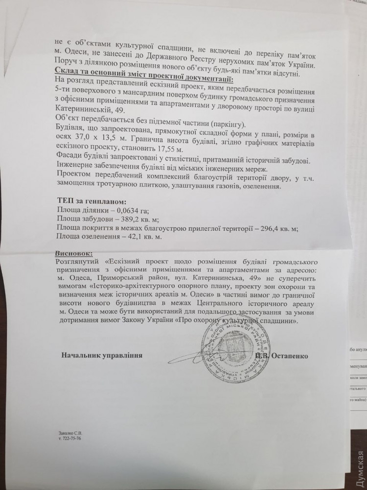 Строительство пятиэтажного дома в центре Одессы началось со скандала: соседи против, застройщик говорит, что все законноСо скандала началось строительство шестиэтажного здания в историческом центре Одессы — на Екатерининской, 49. Соседи утверждают, что застройщик — «Обслуживающий кооператив «Экодом-2» — во время демонтажа и расчистки ветхих строений повредил их дома. Как рассказал «Думской» местный житель Александр, на эту площадку покушаются уже больше двадцати лет. Строения периодически меняли хозяев. В советское время тут располагались мастерские, потом хозяйственный магазин и шиномонтаж. «Перед началом строительства никаких технических обследований соседних домов застройщик не выполнял», — утверждает он. ОК «Экодом-2» приобрел упомянутые строения несколько лет назад. В прошлом году фирма получила в мэрии градостроительные условия и ограничения на «строительство здания общественного назначения с офисными помещениями и апартаментами, благоустройством прилегающей территории». В феврале этого года она зарегистрировала уведомление о начале работ. Подрядчиком выступает ООО «Промышленно-строительная группа «Эталон Буд», автор проекта — ООО «Топ Арт Проект». Как утверждают жильцы, сегодня должна была состояться встреча с представителем застройщика, но на нее пришли только они и чиновники — сотрудники ГАСКа, Приморской райадминистрации, горуправления охраны объектов культурного наследия и ЖКС «Порто-Франковский». Руководитель управления ГАСК Одесского горсовета Александр Авдеев раскритиковал стройку и сообщил, что разрешительные документы отменены. По его словам, участок, где должна появиться пятиэтажка, находится в охранной зоне нескольких памятников архитектуры — Главной синагоги (Еврейская, 25) и доходного дома Еврейского общества (Ришельевская, 30). «Проектировщиком ООО «Топ Арт Проект» не были соблюдены противопожарные расстояния до уже существующих строений. За эти нарушения на генерального проектировщика наложен штраф в размере 240 тыс. 180 гривен, а на заказчика — еще на 75 тыс. 672 гривны, а также отменена регистрация», — сообщил Авдеев. «Думская» связалась с представителем застройщика, чтобы прояснить ситуацию. Как рассказал директор «Экодом-2» Виталий Кирон, нежилые строения были куплены у банка на аукционе как залоговое имущество. Потом фирма заключила с городом договор аренды земли. На участке было расположено два ветхих полуразрушенных строения, на реконструкцию которых были получены градусловия и ограничения, позволявшие запроектировать шестиэтажный дом. «Поскольку этот объект маленький — всего 20 апартаментов и офисы, мы зарегистрировали декларацию о начале работ и оформили категорию СС1. Никаких законов мы не нарушали. Требования по охранной зоне объектов культурного наследия соблюдены. Норма, на которую ссылаются чиновники, регулирует вопросы нового строительства, а в нашем случае речь идет о реконструкции. Закон четко разграничивает новое строительство и реконструкцию», — утверждает руководитель. Сейчас застройщик думает или подать новую декларацию, или обратиться в суд, обжаловав отмену предыдущей. Кроме того, бизнесмены отрицают, что повредили соседние дома. По их словам, расстояние между строениями будет таким, как прежде. На облик исторической части города, говорят представите