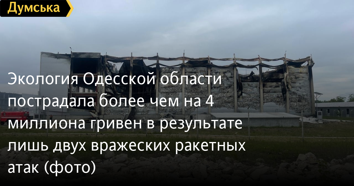 18 мая еще одна ракета прилетела на склад в Овидиополе, после чего произошло возгорание на площади 600 кв м. Атмосферу загрязнили еще 47 тонн диоксида углерода, что привело к вреду на 144 тыс. грн.