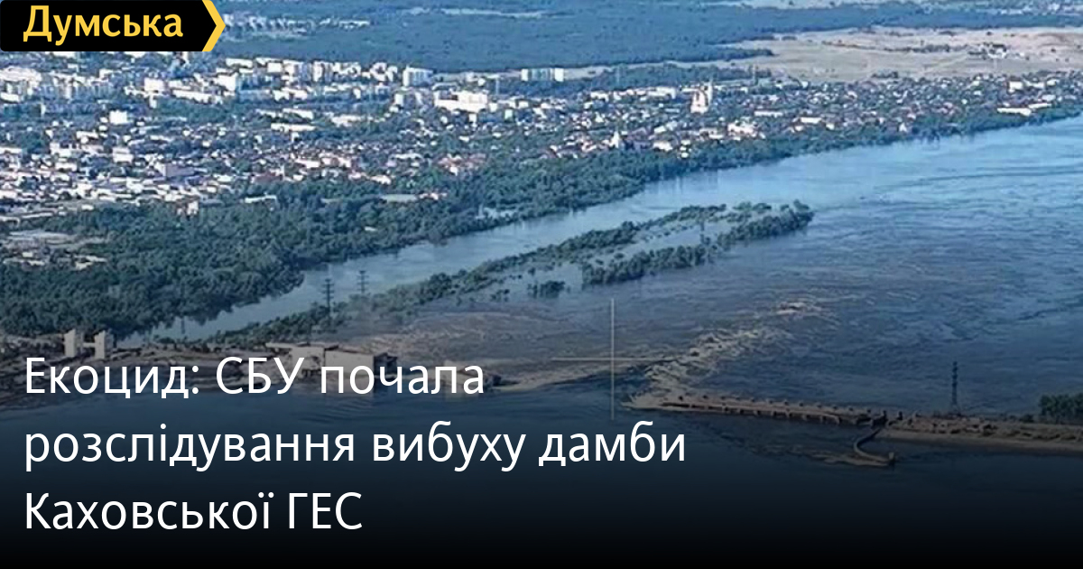 Служба безпеки України кваліфікувала вибух дамби на Каховській гідроелектростанції як екоцид і порушення законів та звичаїв війни.