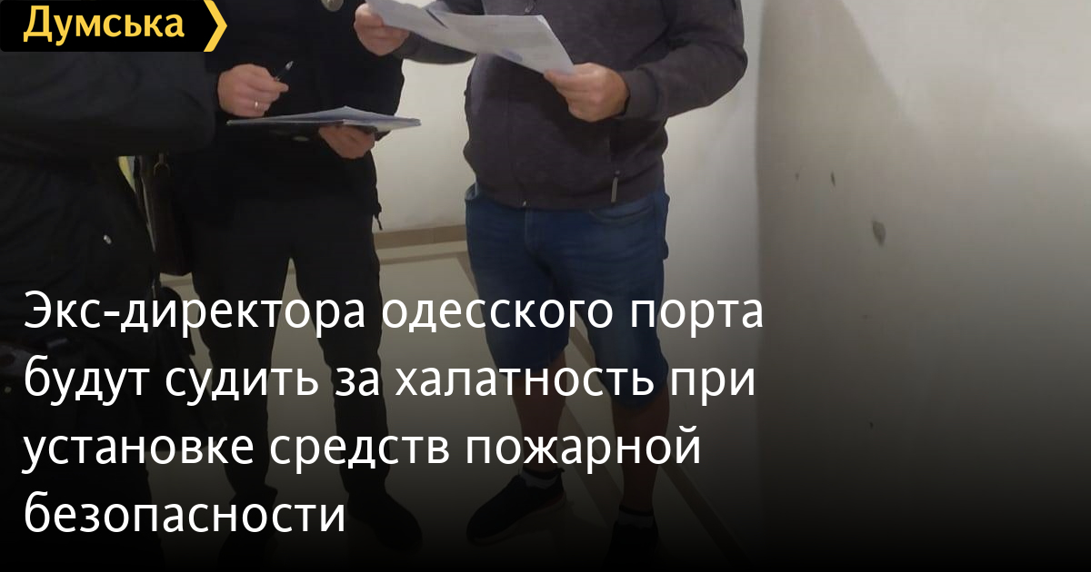Екс-директора одеського порту судитимуть за недбалість під час встановлення засобів пожежної безпекиЕкс-директор одеського морського порту підписав акт про прийом робіт із встановлення засобів пожежної безпеки, які фактично не було виконано. В обласній прокуратурі повідомили, що слідство передало до суду обвинувальний акт про допущену службову недбалість (ч. 2 ст.367 Кримінального кодексу України), яка призвела до розтрати 1,3 млн грн. Встановлено, що системи пожежогасіння та сигналізація не були встановлені у виробничих корпусах, насосних з перекачування легкозаймистих та горючих рідин, корпусах №,2, 3, 4 та 5 складів «Червоні пакгаузи». Помітили помилку? Виділяйте слова з помилкою та натискайте control-enter |