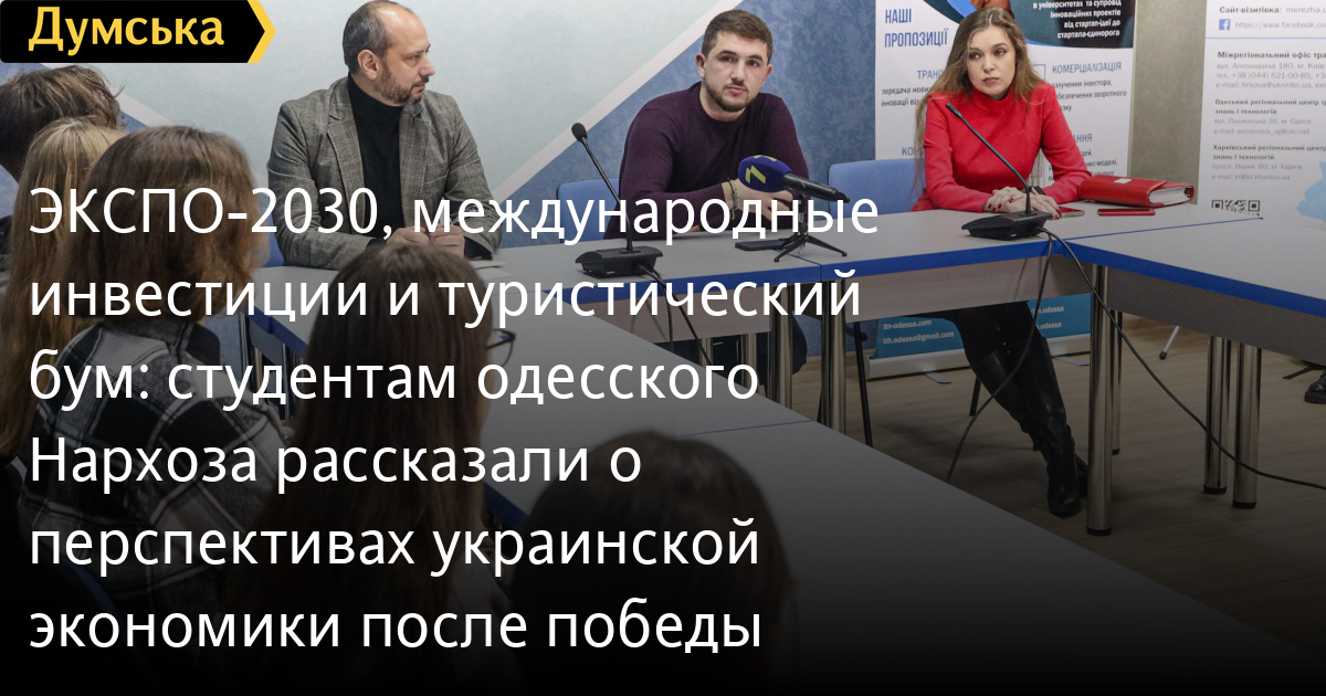 ЕКСПО-2030, міжнародні інвестиції та туристичний бум: студентам ОНЕУ розповіли про перспективи української економіки після перемогиНовопризначений заступник голови Одеської обласної військової адміністрації Роман Григоришин, який відповідає за питання міжнародних відносин, інвестицій та туризму, поспілкувався зі студентами Одеського національного економічного університету. У форматі відкритої лекції чиновник поговорив зі студентами на тему «Проблеми та перспективи української економіки після війни», передає кореспондент «Думської». Зустріч пройшла в головному корпусі вишу, що на самому початку Преображенської вулиці. На думку Романа Григоришина, після перемоги на Україну чекає масштабне економічне зростання, яке торкнеться всіх сфер нашого життя. «Закони економіки такі, що завжди після кризи, потрясінь, зокрема війни, з'являються дуже сприятливі умови для швидкого зростання економіки, — упевнений спікер. — Більшість світових експертів стверджують, що якщо ми правильно організуємо роботу, то на нас чекає найбільше зростання за весь час незалежності. Це означає, що створюватимуться нові процеси, які потребуватимуть кваліфікованих менеджерів та економістів». Водночас урядовець зазначає, що Україна має бути готовою презентувати міжнародним інвесторам готові проєкти, тому працювати над ними необхідно вже зараз. «На момент, коли інтерес до України буде максимальний, ми маємо бути готові прийти з готовим продуктом і показати, що в нас для кожної громади є готовий інвестпроєкт, — зазначив заступник губернатора. — Тут можна побудувати технопарк, тут організувати перероблення сільгосппродукції, тут - консервний завод тощо. Якщо ми зробимо хоча б по одному інвестиційному проєкту в кожній громаді, а їх у нас 90, то економічний стрибок буде дуже сильний». Як приклад одного з найперспективніших і наймасштабніших кейсів Роман Григоришин навів можливу перемогу нашої країни та міста в конкурсі на проведення Всесвітньої виставки ЕКСПО-2030. «Я прихильник позиції, коли до великої мрії необхідно йти маленькими кроками, — розповів спікер. — Одна з таких ідей — це ЕКСПО 2030. Рік тому ніхто не вірив, що Україна та Одеса можуть замахнутися на Всесвітню виставку, сьогодні ми головний конкурент Саудівської Аравії та наші шанси виграти дуже великі». У рамках лекції студенти скористалися можливістю поставити досить гострі запитання. У підсумку заступник губернатора закликав найактивніших приєднатися до його команди та долучатися до роботи на майбутнє країни й добробут регіону. СМЕРТЬ РОСІЙСЬКИМ ОКУПАНТАМ! Помітили помилку? Виділяйте слова з помилкою та натискайте control-enter |