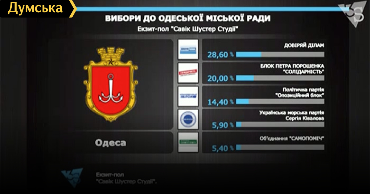 В студии Савика Шустера обнародовали данные экзитпола по выборам в Одесский городской совет.