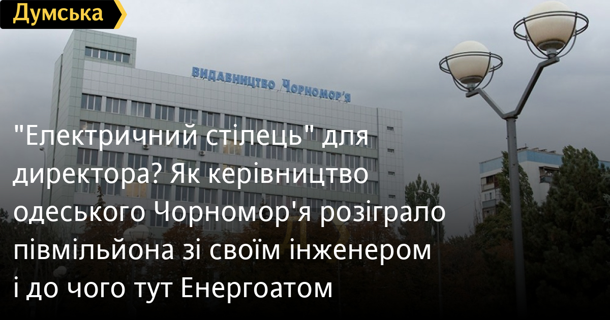 «Електричний стілець» для директора? Як керівництво одеського Чорномор'я розіграло півмільйона зі своїм інженером і до чого тут ЕнергоатомСвідчення махінацій із закупівлею електроенергії для обласного комунального видавництва «Чорномор'я» опинилися в розпорядженні «Думської». Ми проаналізували отримані документи, дані і дійшли висновку, що бюджет втратив понад 500 тисяч гривень, а сліди можливого злочину ведуть до приймальні директора і облради. Тепер по порядку. У грудні 2023 року видавництво провело тендер на закупівлю електроенергії. В аукціоні брали участь дві компанії. ТОВ «ЕнерджіПро100» запропонувало ціну 6,72 млн грн, а ТОВ «Оператор Енергії» 7,27 млн гривень. Різниця між пропозиціями значна понад півмільйона. Але що робити, щоб перемога дісталася потрібному конкуренту? Все дуже просто. «ЕнерджіПро100» — дискваліфікували через «неповний пакет документів». Контракт дістався фірмі «Оператор Енергії». Здавалося, не підкопаєшся, але, як кажуть у болгарському прислів'ї, маленькі камінчики перевертають візок. Виявилося, що серед поданих для участі в тендері документів є договір з мережею «Копейка», який від імені фірми-постачальника підписує заступник директора Дмитро Хмилевський. Ця ж людина є головним інженером того самого видавництва «Черноморье», яке закуповує енергію. Його кабінет знаходиться в одній приймальні з в.о. директора підприємства Тетяною Кохан. Більш того, підпис Хмилевського під комерційним договором приватної фірми ідентичний його підпису під офіційною службовою документацією видавництва, в чому переконалися наші джерела. Зв'язок між видавництвом і ТОВ «ЕнерджіПро100» простежується досить просто. Фірма роками орендувала офіс на 5-му поверсі в будівлі видавництва на площі Дерев'янко. Як пояснила «Думській» правознавець Анастасія Кузнєцова, участь «ЕнерджіПро100» виглядає як класична роль статиста. «Хмилевський, як профільний фахівець, не міг випадково забути подати необхідні документи. Завдання було просте: створити видимість конкуренції, заздалегідь програти через формальність і дозволити «Оператору Енергії» забрати контракт за завищеною ціною, — пояснює вона.— Всі докази цієї схеми лежать у відкритому доступі на Prozorro. Бюро економічної безпеки та прокуратурі не потрібно навіть проводити складні обшуки достатньо зіставити підписи та адреси реєстрацій». Засновник і директор «ЕнерджіПро100» Юлія Луніна. Її чоловік Олексій Лунін З декларації ми з'ясували, що у Олексія є батько Сергій Лунін, який до повномасштабного вторгнення керував великим машинобудівним заводом «Атоменергомаш» у структурі «Енергоатому» в Енергодарі. Іншими словами, за скромною фірмою-прокладкою, що влаштувалася на п'ятому поверсі видавництва, стоять аж ніяк не скромні прізвища. Зв'язки між Луніними і Хмилевським простежуються давні. Раніше Юлія Луніна була засновником приватного підприємства «Техенергострой» з Южноукраїнська. А Дмитро Хмилевський був директором цієї компанії. Фірму закрили ще в 2011 році. Вишенька на торті це переможець «Оператор Енергії», відома читачам «Думської» компанія. Її засновниками є Айк Погосян і Артур Хачатрян. Останній є племінником депутата Одеської облради від ОПЗЖ Князя Хачатряна, якого називають господарем Березовського району. Артур Хачатрян обирався до Одеської райради теж від цієї по