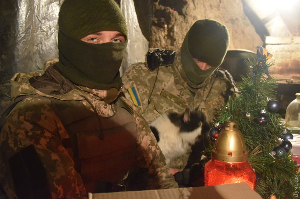 Новый год отмечают не только в уютном и тихом тылу, но и на фронте. Наш постоянный автор запечатлел, как готовятся к празднику военнослужащие 28-й отдельной одесской механизированной бригады, которая защищает свободу и независимость Украины на востоке страны. Он побывал на одном из отдаленных взводных опорных пунктов соединения в районе Волновахи.