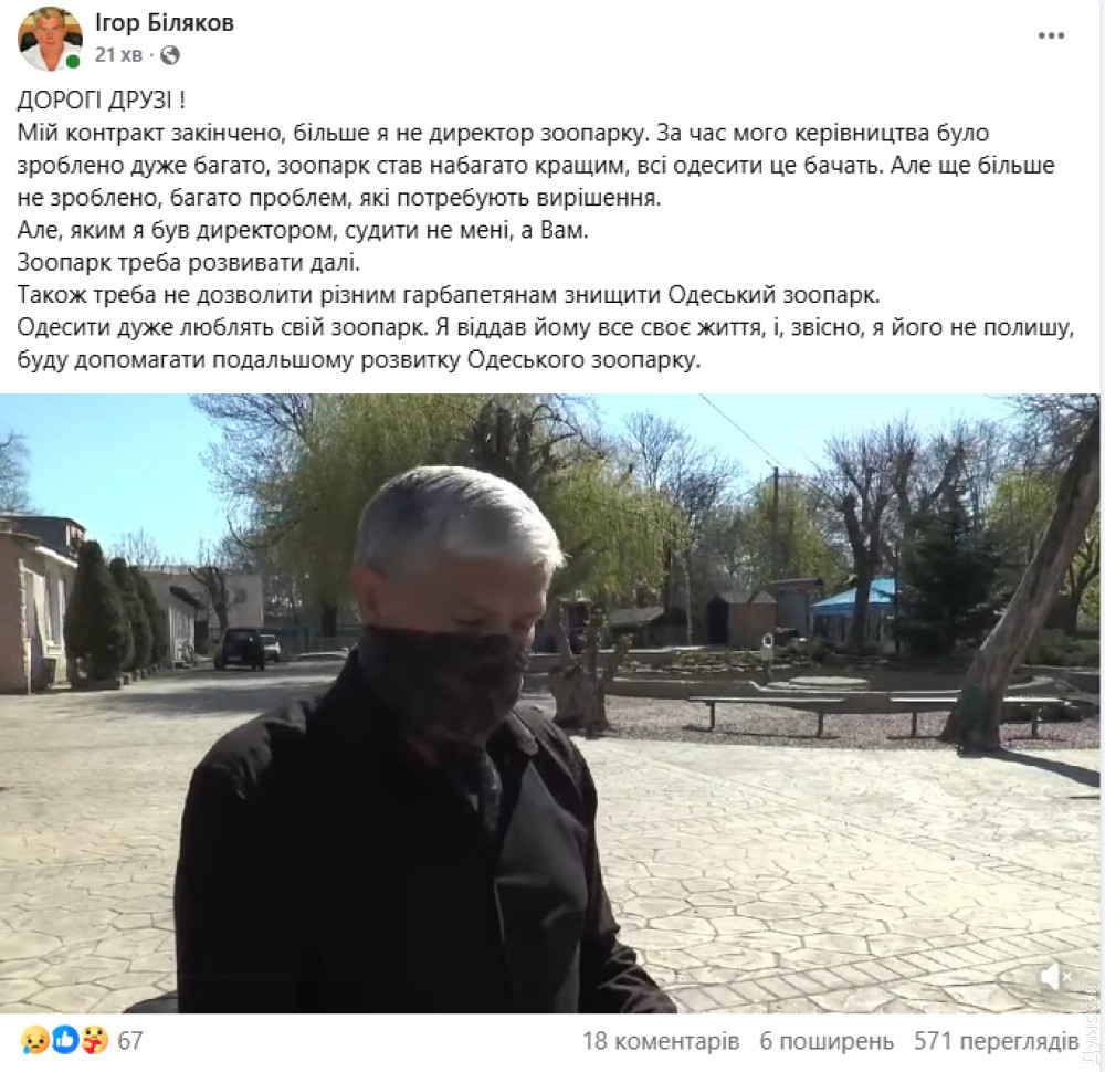 Пішов чи пішли? Ігор Біляков залишив посаду директора Одеського зоопаркуБагаторічний директор Одеського зоопарку, головний упокорювач змій та зірка щорічних новорічних кліпів Ігор Біляков пішов з посади. Про це він повідомив на своїй сторінці у Facebook. За словами Білякова, термін дії його контракту добіг кінця. Підбиваючи підсумки свого керівництва, він зазначив, що за ці роки зоопарк суттєво змінився на краще, хоча планів залишилося ще чимало. «За час мого керівництва було зроблено дуже багато, зоопарк став набагато кращим, всі одесити це бачать. Але ще більше не зроблено, багато проблем, які потребують вирішення. Але яким я був директором, судити не мені, а вам», — звернувся він до містян. Ексдиректор наголосив, що зоопарк потребує подальшого розвитку, і він не збирається залишатися осторонь справ установи, якій присвятив усе життя. Проте в його прощальному пості знайшлося місце і для тривожних застережень. «Також треба не дозволити різним гарбапетянам знищити Одеський зоопарк», — написав Біляков. Кого саме він мав на увазі під «гарбапетянами», автор не уточнив. Однак у коментарях під дописом він повідомив, що піти — це було не його рішення. Нагадаємо, Ігор Біляков очолював Одеський зоопарк з 2013 року. Він запам’ятався одеситам не лише реконструкцією звіринця, а й своїми епатажними образами: директор регулярно перевдягався у символів року — свиню, тигра, кролика та інших тварин — для зйомок гумористичних привітань. Кар’єра Ігоря Білякова не обійшлася без гучних скандалів і трагедій. За роки його керівництва зоопарк не раз опинявся в центрі уваги через загибель тварин: одесити пам’ятають і загадкове «самогубство» білки, і смерть левиці та ведмедя, і шокуюче вбивство леопарда. Були питання до директора і у правоохоронців. У 2019 році розгорівся корупційний скандал: за даними обласного управління захисту економіки Нацполіції, Бєляков разом із чиновниками міськради нібито вимагав 3 тисячі доларів у підприємця за оренду приміщення під зоомагазин на території звіринця. Шлейф кримінальних справ тягнеться за установою і сьогодні. Зараз розслідуються махінації з грошима, виділеними на новий котел у зоопарку — підозри вже вручили директору фірми-підрядника та інженеру з технічного нагляду. Не давали спокою керівництву і захисники тварин. Останнім часом волонтери активно виступали за перенесення зоопарку з центру міста. У мерії «Думській» підтвердили інформацію про звільнення Білякова. Хто замінить легендарного директора на цій посаді, не відповіли. СМЕРТЬ РОСІЙСЬКИМ ОКУПАНТАМ! Помітили помилку? Виділяйте слова з помилкою та натискайте control-enter Новини по цій темі: |