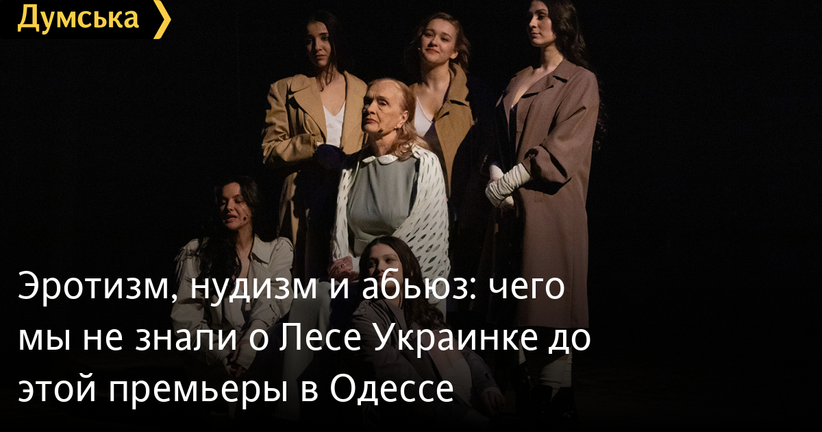 Эротизм, нудизм и абьюз: чего мы не знали о Лесе Украинке до этой премьеры в ОдессеПервые показы пластически-поэтического перформанса «Нехай ніхто не плаче по мені» состоялись в формате «зритель на сцене» в Одесском академическом украинском музыкально-драматическом театре имени Василия Василько. Продолжаем праздновать 155-летие со дня рождения Леси Украинки благодаря режиссеру и хореографу Денису Григоруку, автору текстов на основе писем и воспоминаний, завлиту «васильковцев» Светлане Бондарь и другим авторам необычного спектакля, о которых подробнее расскажем ниже. Сразу заметим: кто ожидает исчерпывающий рассказ о выдающейся украинской писательнице, пусть лучше смирится с тем, что женщина вообще (ну не всякая, конечно) многомерная личность, а наша Леся и подавно. Сейчас в Лесином образе видим шесть актрис, но и это не предельная цифра, если бы целью театра был тот самый исчерпывающий рассказ. Важнее было коснуться самых нежных душевных струн поэтессы, рассказать немного о семейных обстоятельствах, девичьих секретах, сердечных переживаниях, ведь Леся была привлекательной и чувственной женщиной вопреки слабому здоровью. Невозможно представить на сцене васильковцев подобный спектакль без участия заслуженной артистки Украины Галины Кобзарь-Слободюк. Эта актриса не впервые за свою творческую биографию предстает в образе Леси Украинки, она весьма мелодично и совершенно декламирует ее стихи, олицетворяя зрелую писательницу, которая смотрит на саму себя уже немного отстраненно и с умилением. Это тот возраст и то состояние души, когда уже есть силы и желание обнять саму себя, эту болезненную девочку, измученную неразделенной любовью девушку, разочарованную женщину, принимающую взвешенное решение удовольствоваться немногим. «Жити хочу! Геть думи сумні!», — провозглашает эта Леся с акцентом на слове «геть», волшебном украинском слове, не нуждающемся в дополнительных глаголах… … На темной сцене сразу пять молоденьких Лесь, Ларис Косач, то есть, Ольга Максимив, Екатерина Полякова, Богданна Шуманская, Мария Буймович и Тамара Лукаш. Одеты лаконично и вне контекста эпохи: белое платье-комбинация, плащик, ботинки с носками, болезнь обозначена наличием бинтов на руке, ноге (реквизит и костюмы Оксаны Тарнавской). Также на сцене присутствуют чемоданы, венские стулья и черные зонты с подсветкой изнутри. Со всем этим девушки танцуют под музыку Дмитрия Белункина, порой застывая в красивых мизансценах. Поза плакальщицы со спущенными пышными волосами, покрывающими фигуры актрис. «Нехай ніхто не плаче по мені», ибо лишь сама Леся знает, как и почему должна оплакать собственную судьбу. Она была вполне эротичной и довольно непрактичной, совсем как воспетая ею Мавка, не приспособленная к жизни в мире людей. Это и становится доминантой перформанса. Одежда осовременена, протеста этот факт не вызывает, но царапнуло слух слово «мажор» как вкрапление позднейшей лексики. Леся устами одной из актрис утверждает, что воспитание в зажиточной семье не сделало ее, сестер и брата «мажорами». Ну правда, не стоит экономить на буквах, лучше же сказать что-то вроде «мы не стали зазнайками, богатыми бездельниками». Либо жестко осовременивать речь исторического лица (это интересно, но может далеко завести), либо соблюдать речевые нормы эпохи. Все мужские 