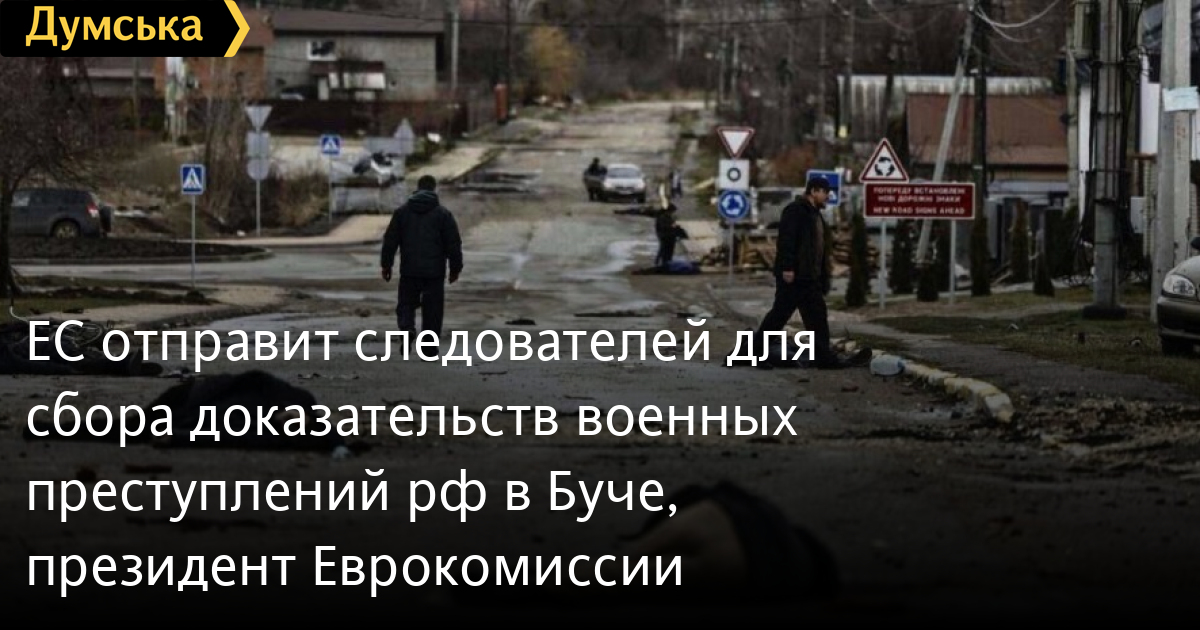 «Я поговорила с президентом Украины Владимиром Зеленским о зверских убийствах мирных жителей в Буче и других местах в Украине. ЕС готов направить совместные следственные группы для документирования военных преступлений по согласованию с генеральным прокурором Украины. Европол и Евроюст поддержат», – заявила президент Еврокомиссии.
