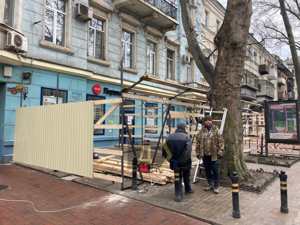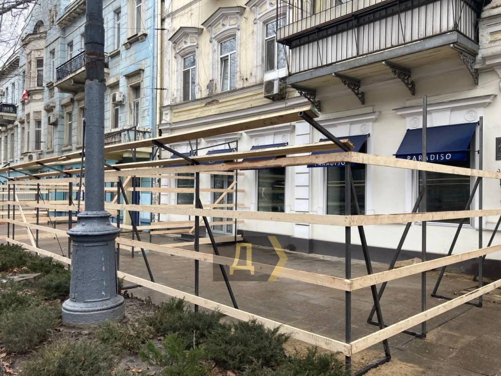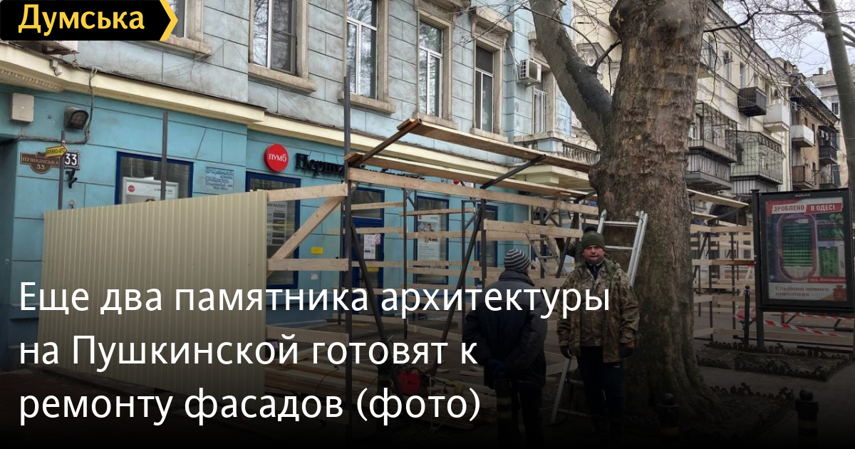 Строительные леса начали устанавливать возле двух соседствующих друг с другом памятников архитектуры на Пушкинской улице — доходного дома Н. Шретера и дома Мармарино (33 и 35 номера соответственно).